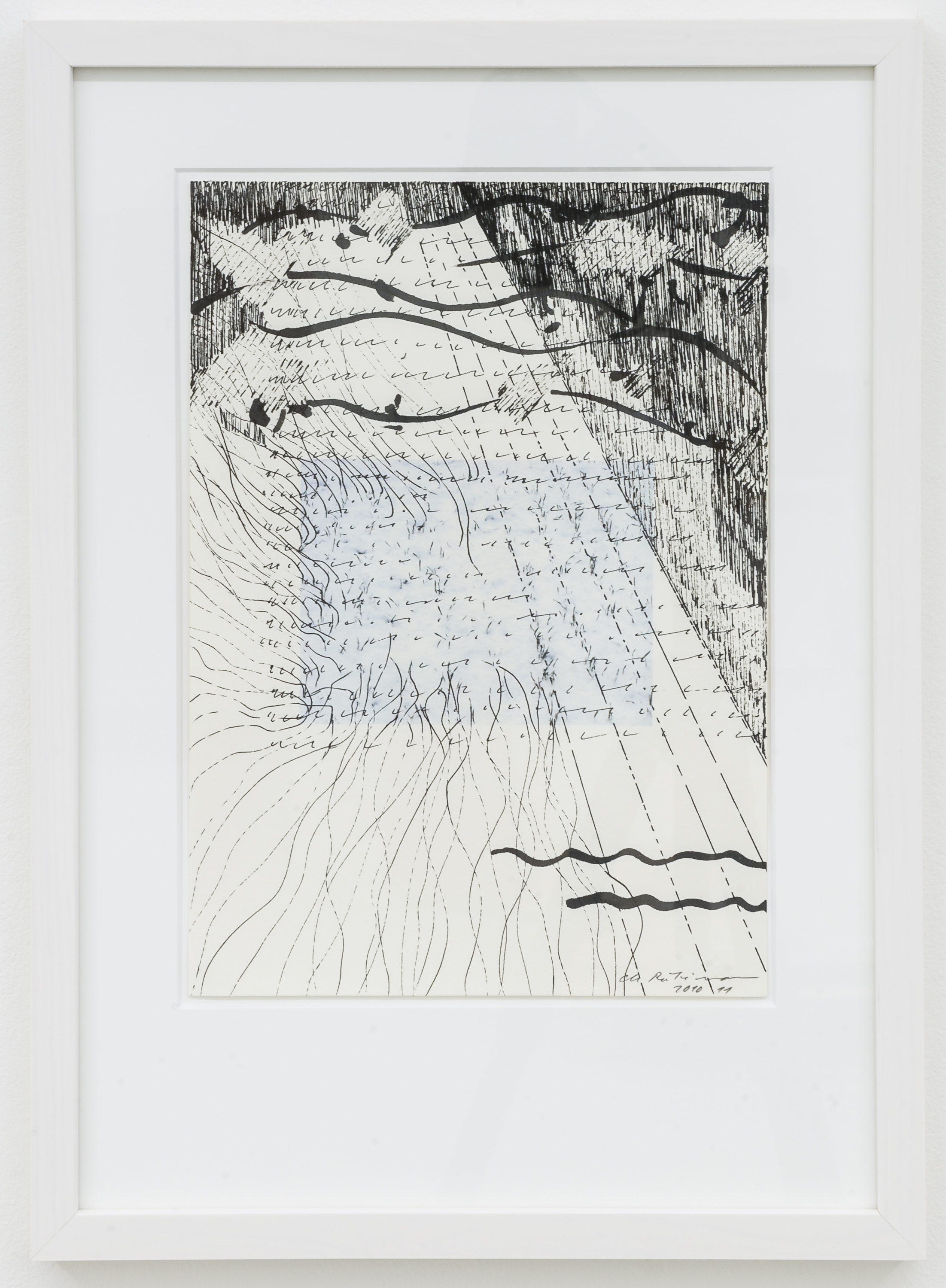 Christoph Rütimann is one of the most important Swiss artists of his generation. His artistic approach to the world including drawing, painting, sculpture, photography and video and performance constitutes a performative measuring of that world. Colour becomes his counterpart, and his tracking shots travel through it along lines that are to be found everywhere. Rütimann’s drawings are also line works that point beyond the edge of the paper and, as a theme passing from one medium to another, find their way into the world of the videos, where they even reflect on the concept of a contemporary painting as they appear on the screen.