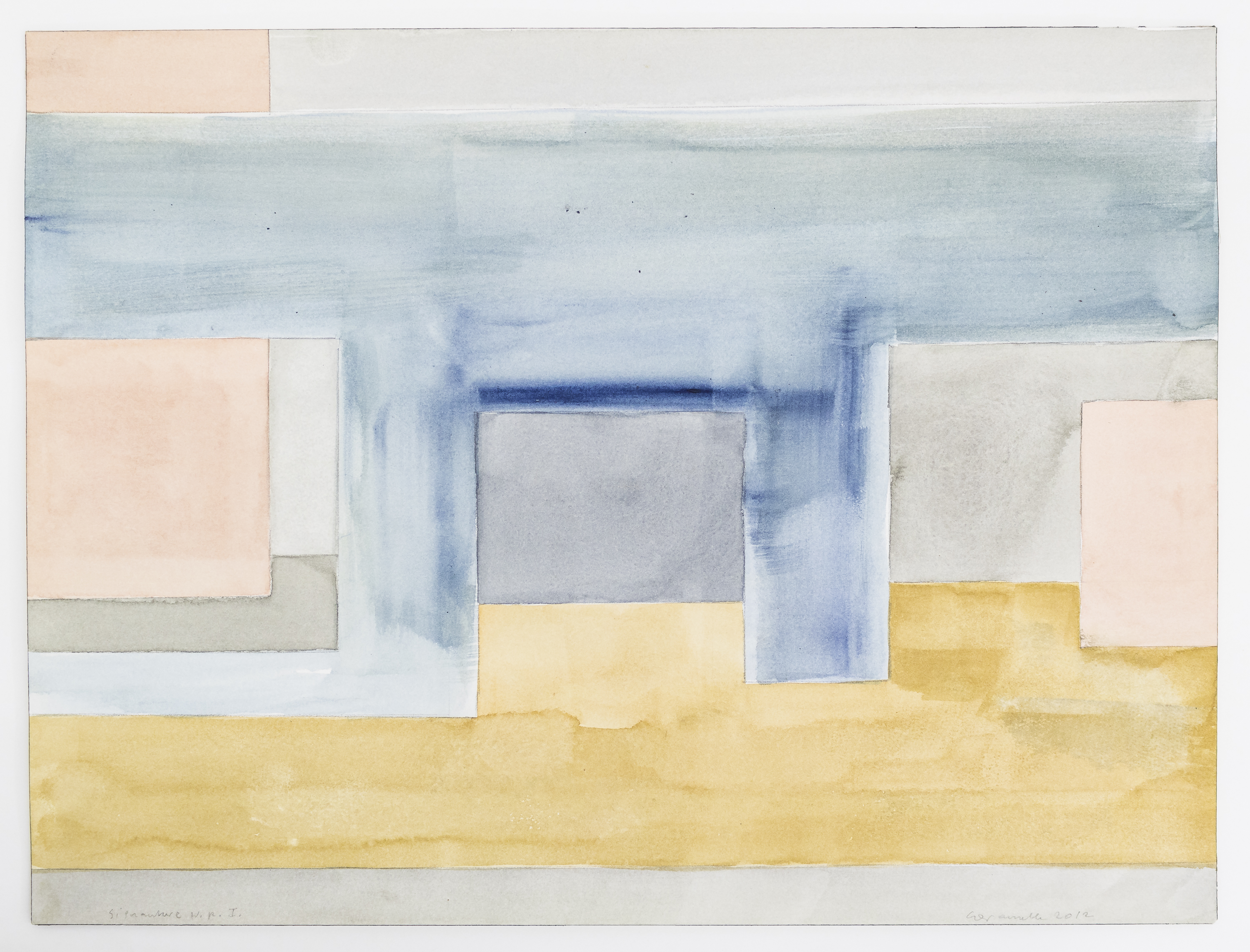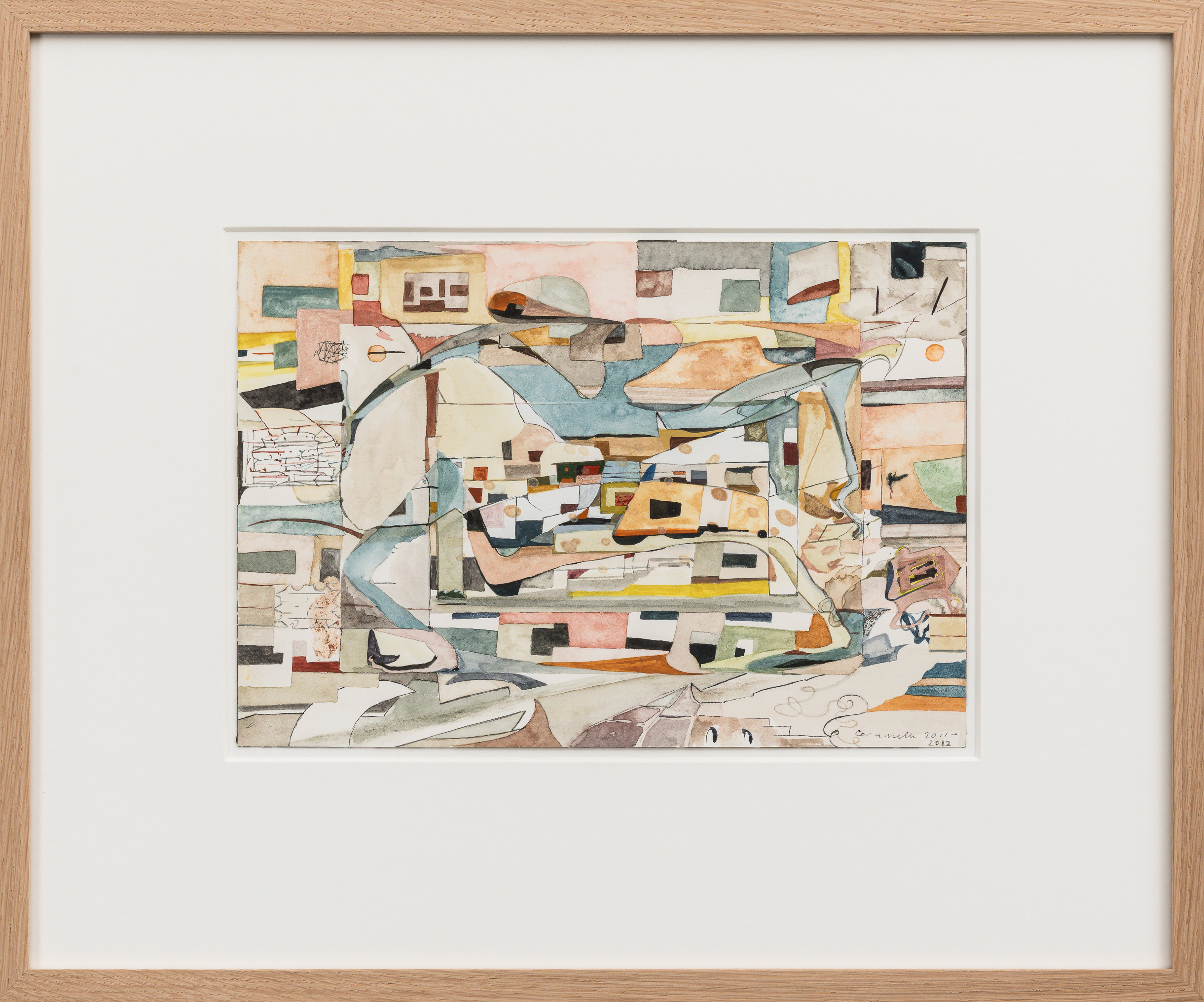 Since more than 40 years, Ernst Caramelle is questioning reality and illusion in the context of art in various media such as painting and wall painting, drawing, photography and video. The conceptually justified work deals with aspects such as the production, reproduction and perception of art and its reception. In colored, usually geometrical forms and with duplications, reflections and varied repetitions, Caramelle's painting describes spatial perspectives broken by different perspectives. The result is a spatial illusion, whether on wood, paper, cardboard or the wall, which allows the transitions to flow visually into each other, blurring the boundaries between reality and illusion. The fresco-like murals made of watercolors also have an illusionistic effect: their geometrically abstract shapes simulate three-dimensionality and thus depth of space by means of a perspective representation, so that the boundaries between the exhibition space and the painted space appear diffuse.