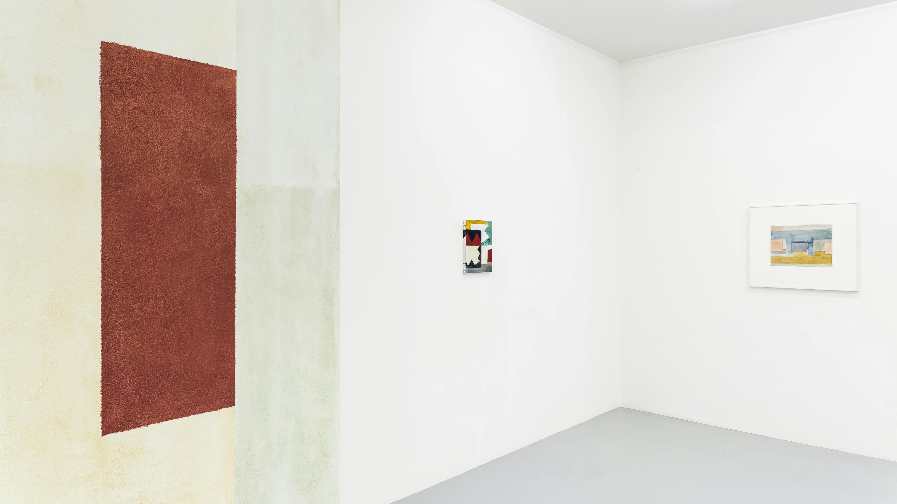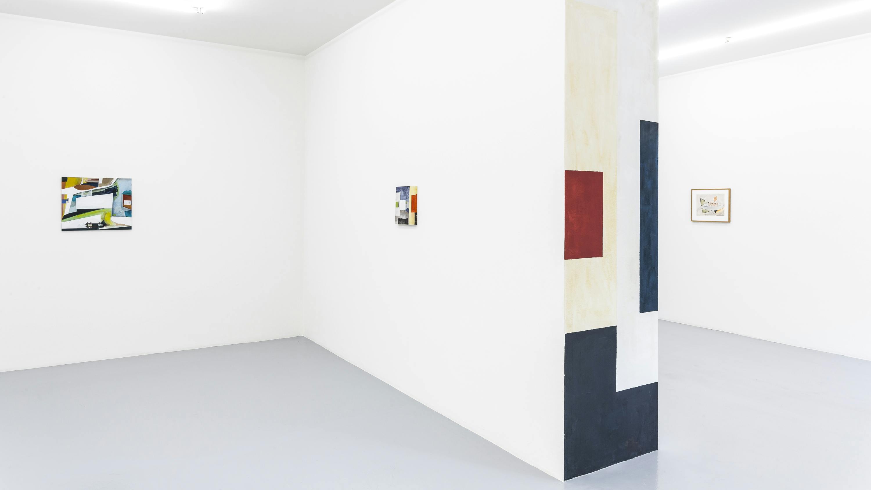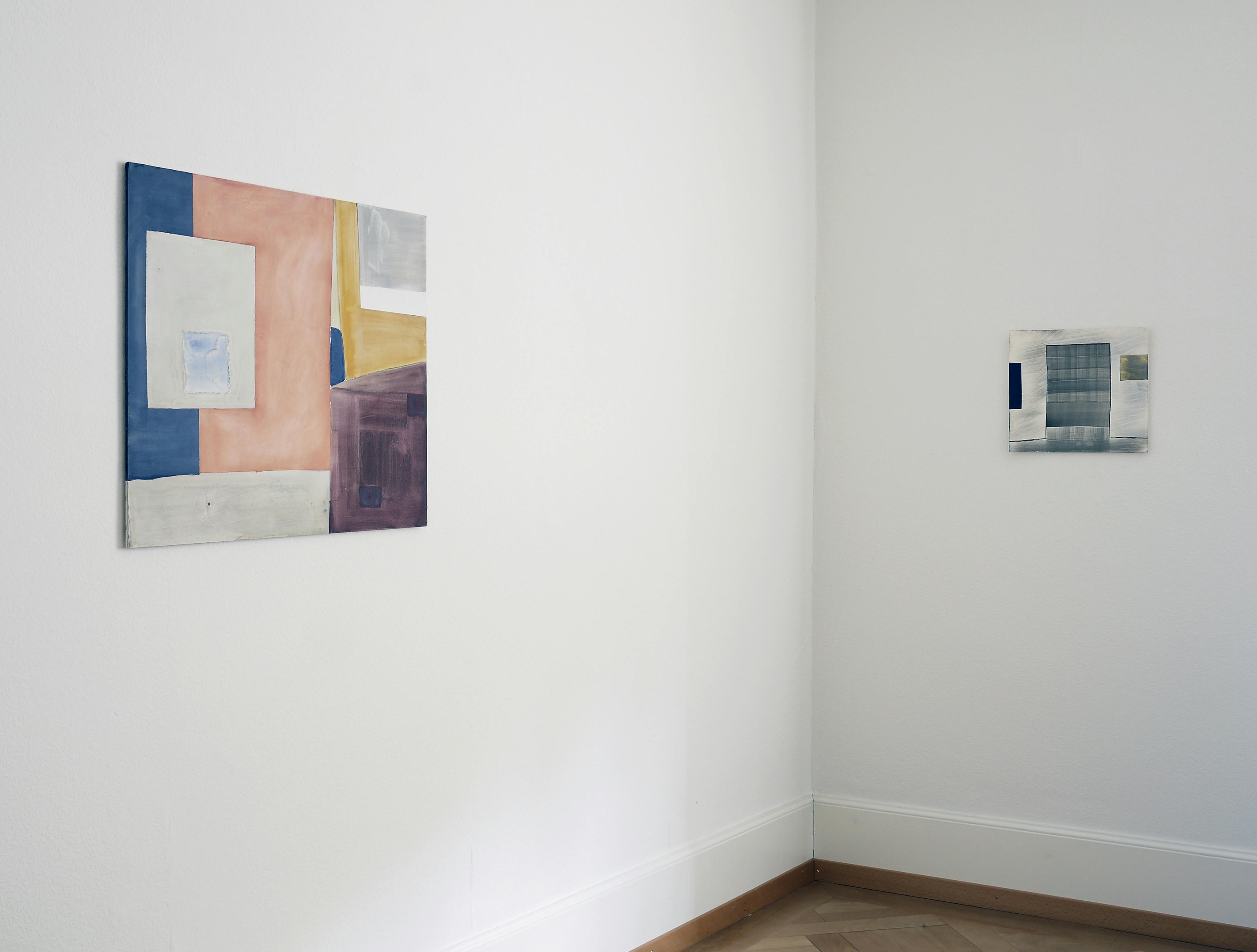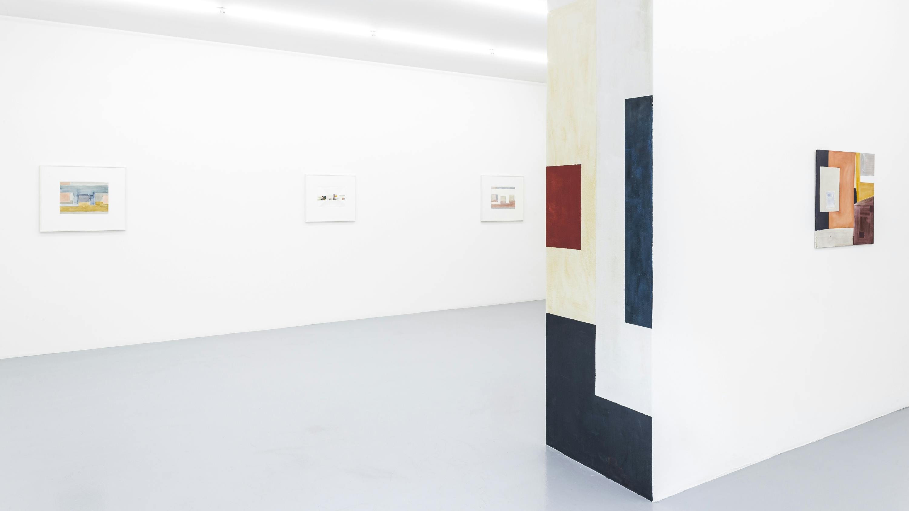Since more than 40 years, Ernst Caramelle is questioning reality and illusion in the context of art in various media such as painting and wall painting, drawing, photography and video. The conceptually justified work deals with aspects such as the production, reproduction and perception of art and its reception. In colored, usually geometrical forms and with duplications, reflections and varied repetitions, Caramelle's painting describes spatial perspectives broken by different perspectives. The result is a spatial illusion, whether on wood, paper, cardboard or the wall, which allows the transitions to flow visually into each other, blurring the boundaries between reality and illusion. The fresco-like murals made of watercolors also have an illusionistic effect: their geometrically abstract shapes simulate three-dimensionality and thus depth of space by means of a perspective representation, so that the boundaries between the exhibition space and the painted space appear diffuse.