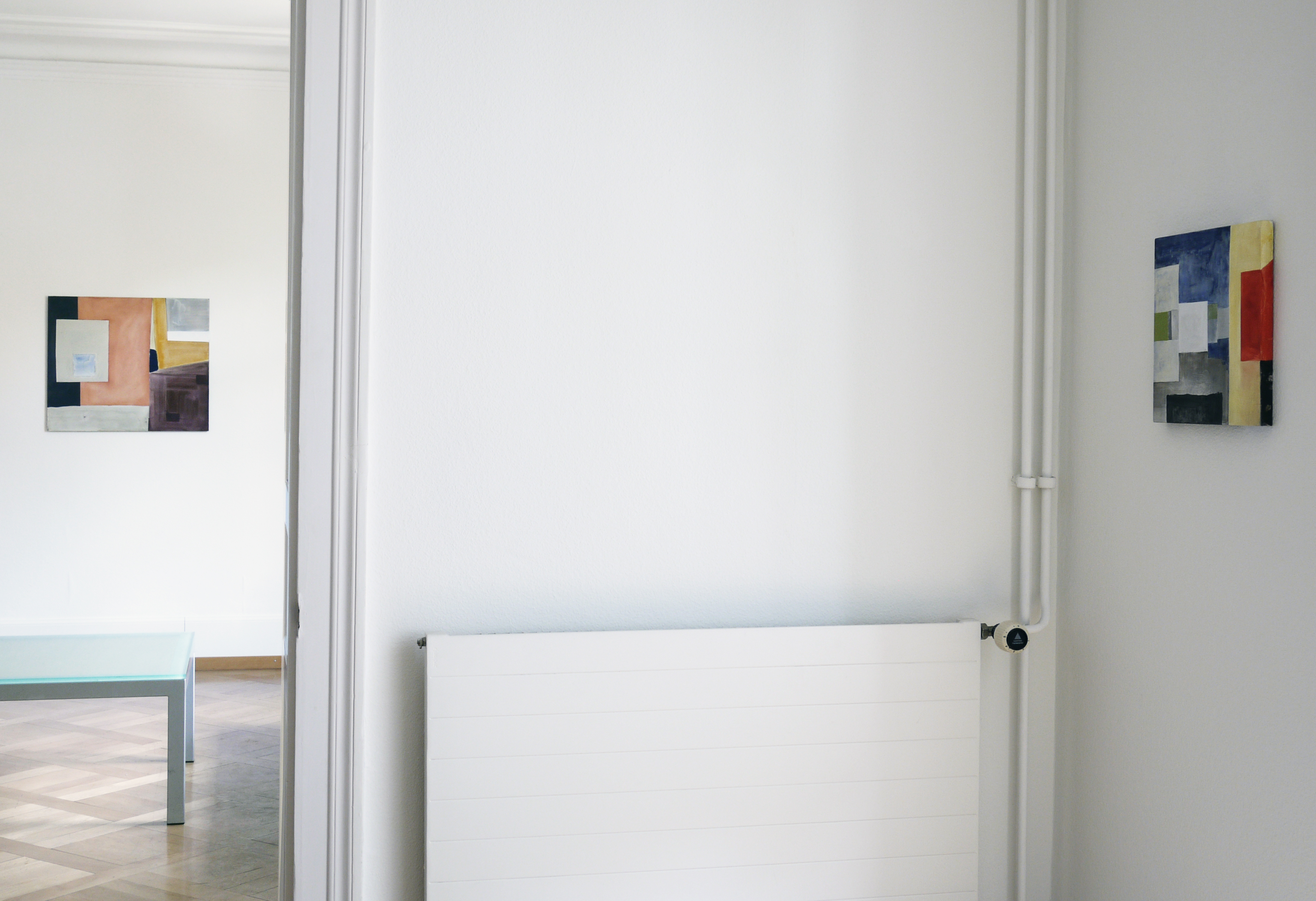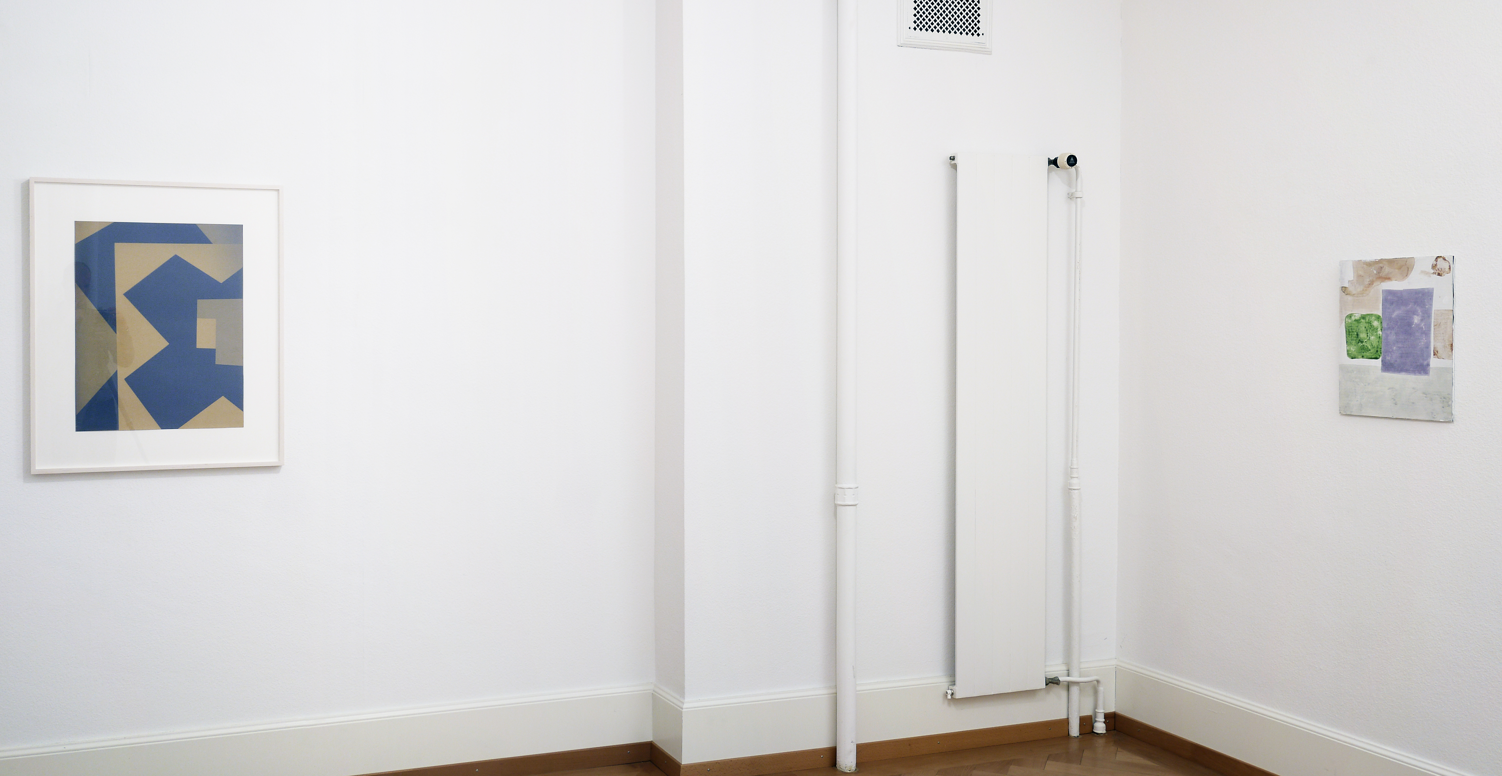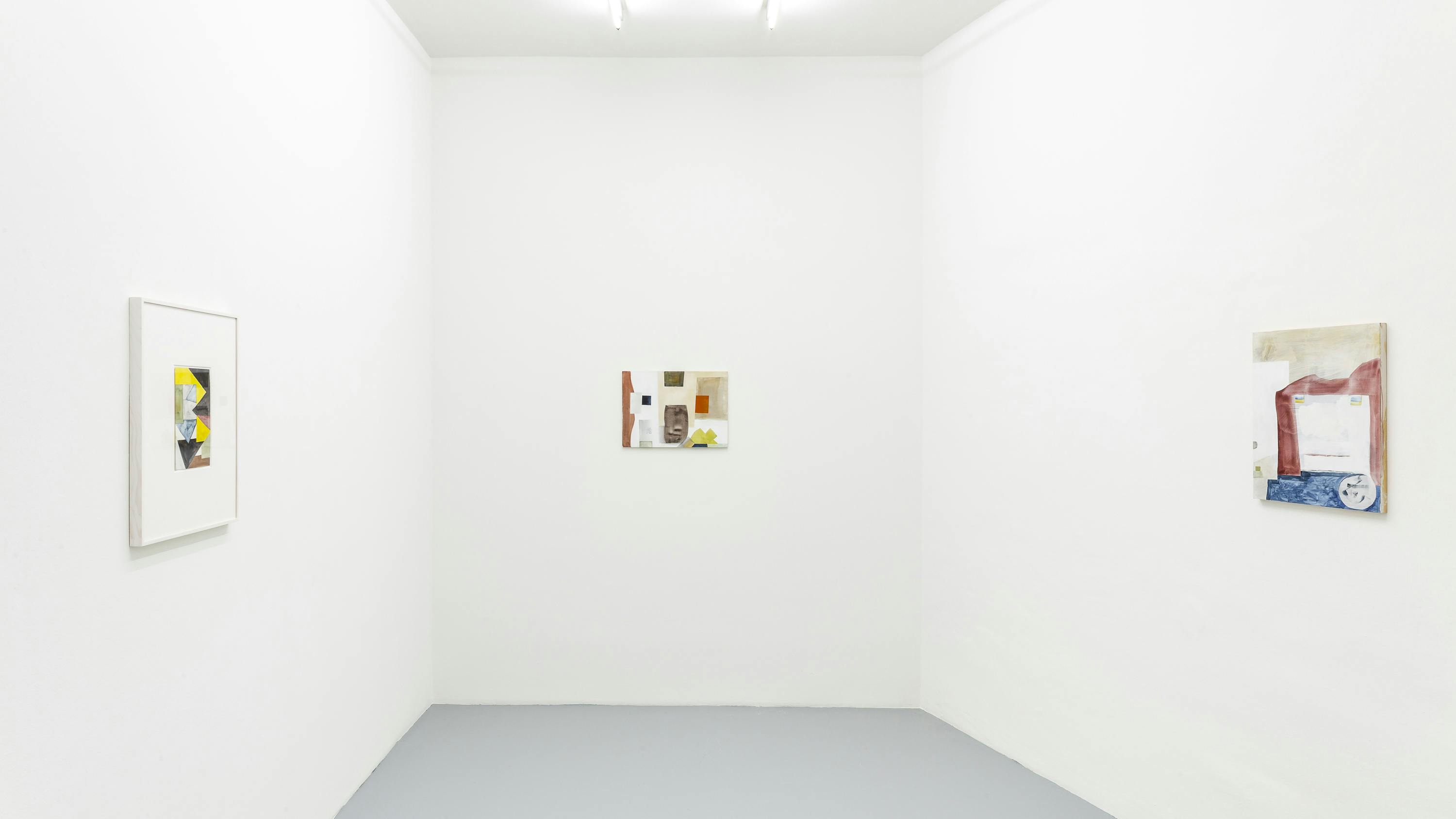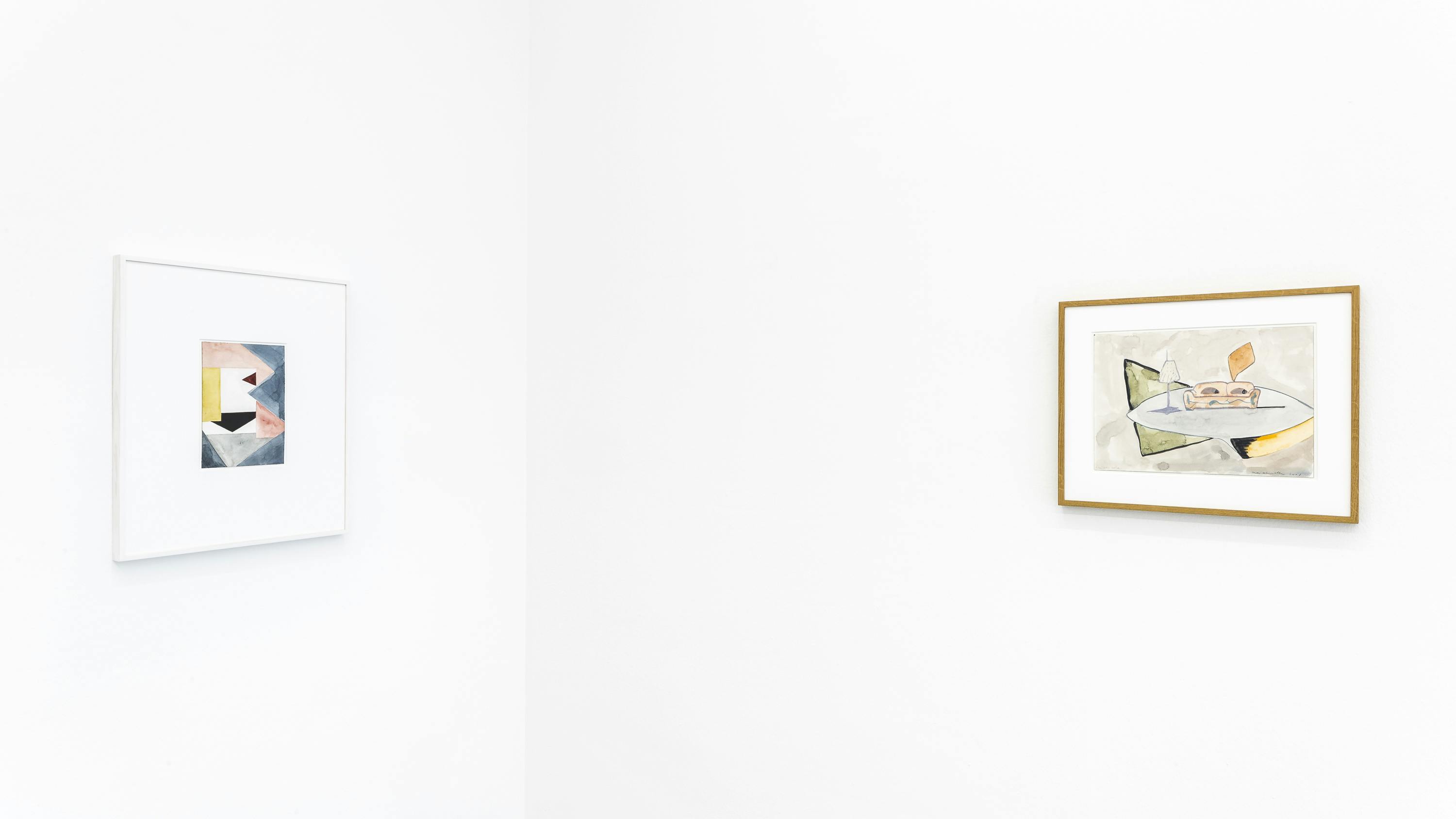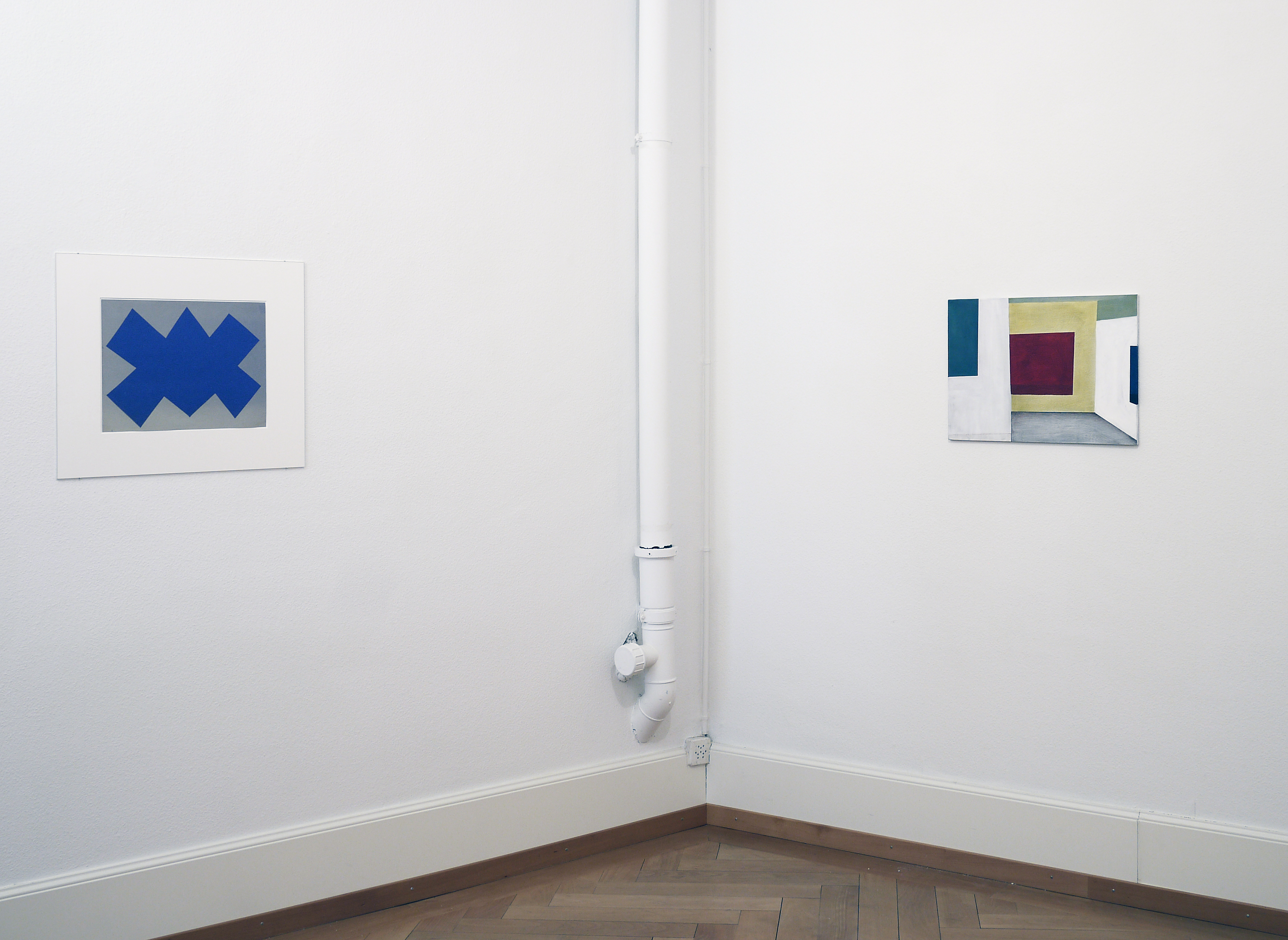 Since more than 40 years, Ernst Caramelle is questioning reality and illusion in the context of art in various media such as painting and wall painting, drawing, photography and video. The conceptually justified work deals with aspects such as the production, reproduction and perception of art and its reception. In colored, usually geometrical forms and with duplications, reflections and varied repetitions, Caramelle's painting describes spatial perspectives broken by different perspectives. The result is a spatial illusion, whether on wood, paper, cardboard or the wall, which allows the transitions to flow visually into each other, blurring the boundaries between reality and illusion. The fresco-like murals made of watercolors also have an illusionistic effect: their geometrically abstract shapes simulate three-dimensionality and thus depth of space by means of a perspective representation, so that the boundaries between the exhibition space and the painted space appear diffuse.