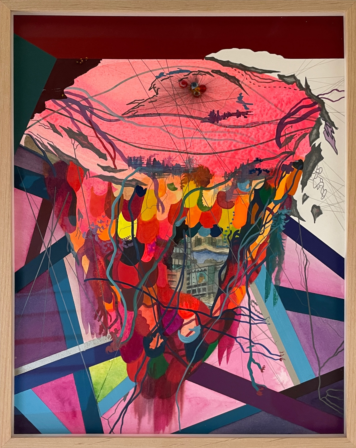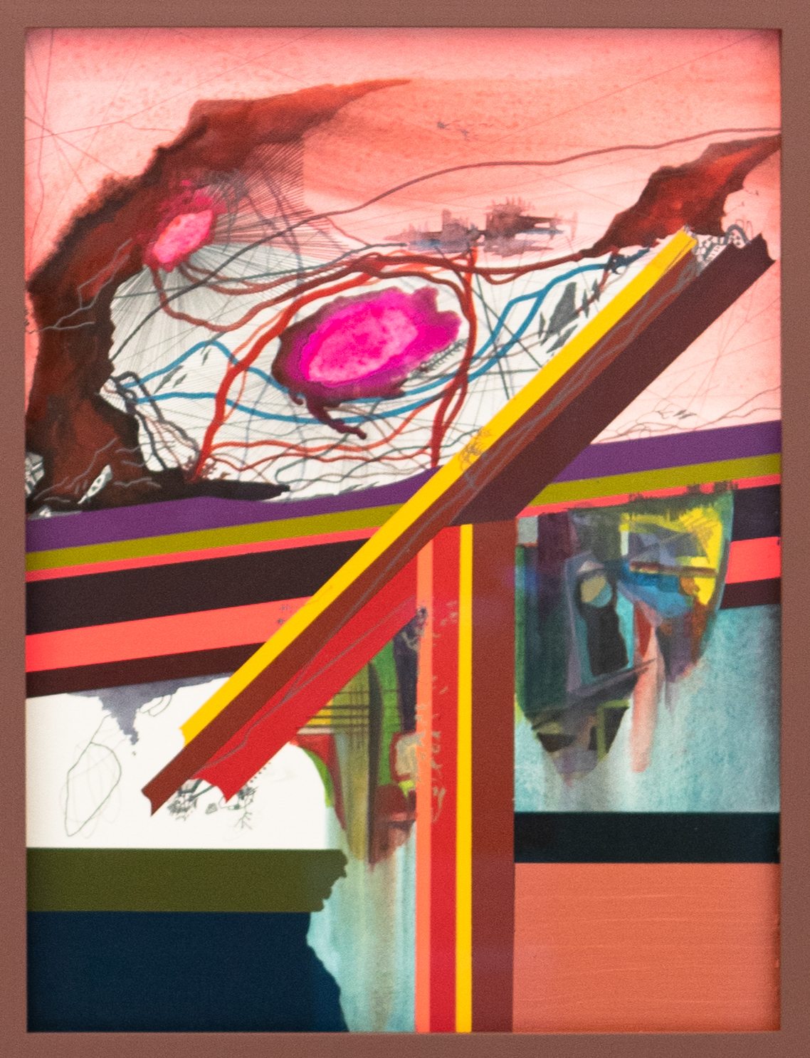 drawing, watercolor and acrylic, mixed media on paper, laminated on aludibond