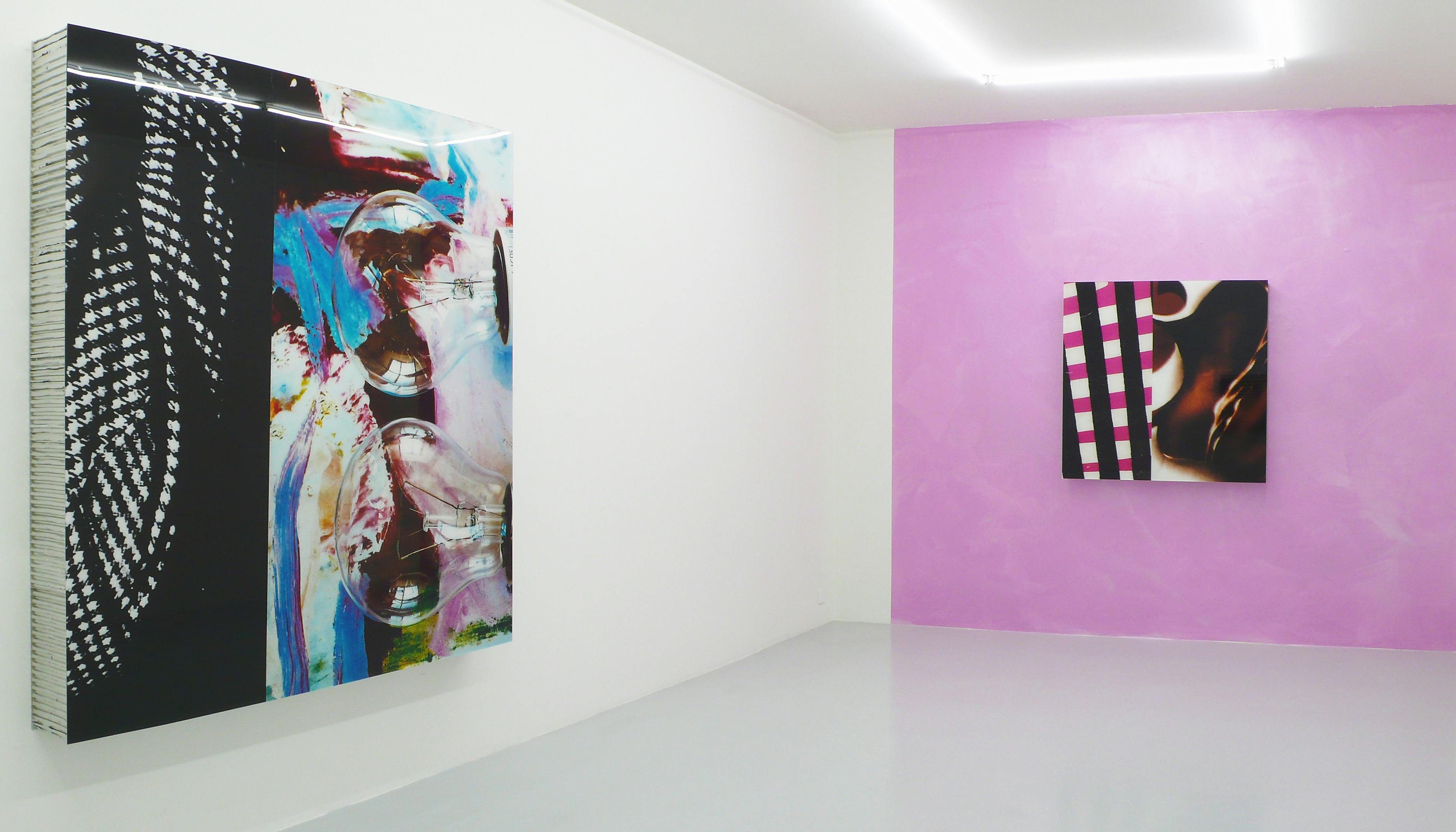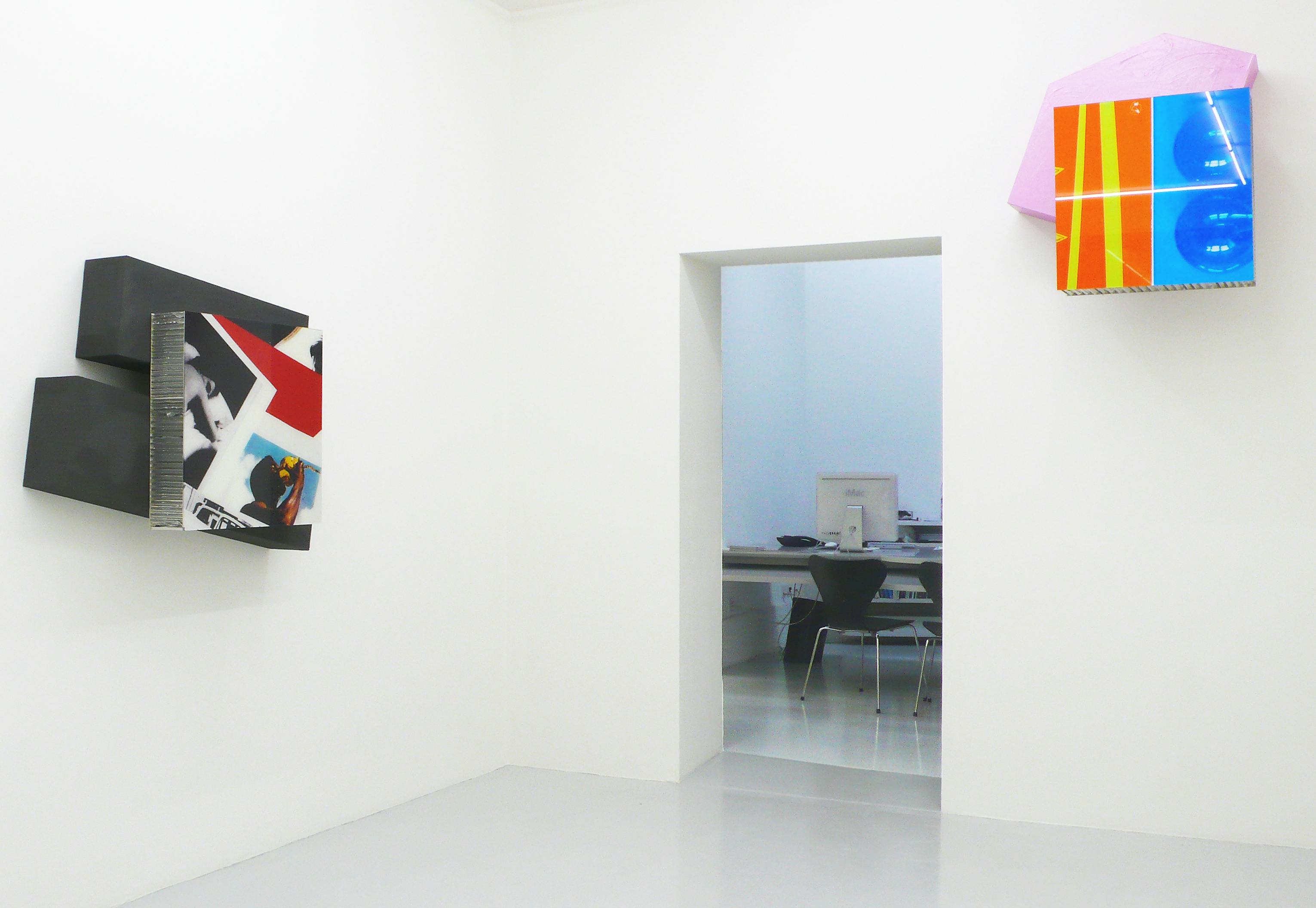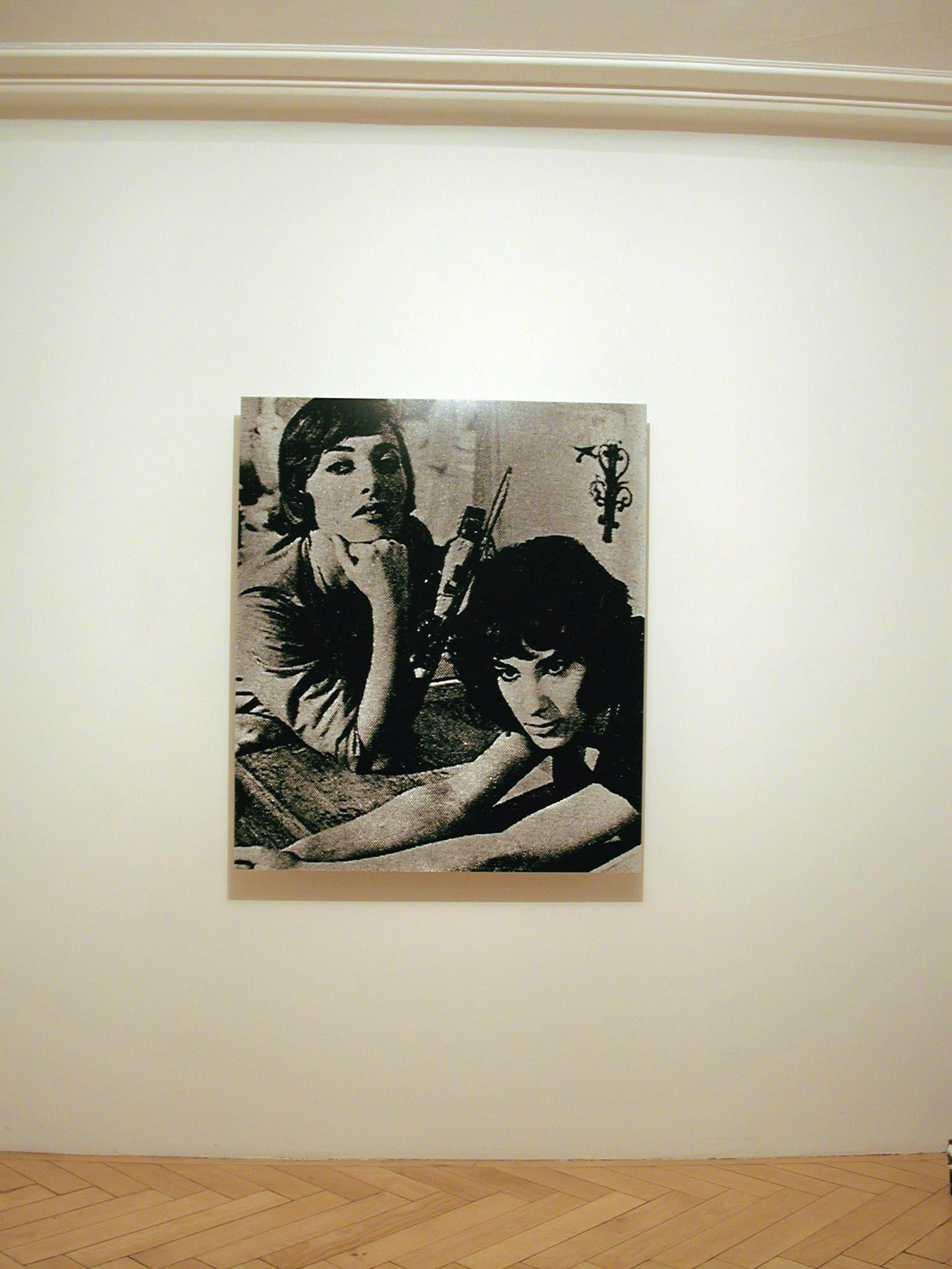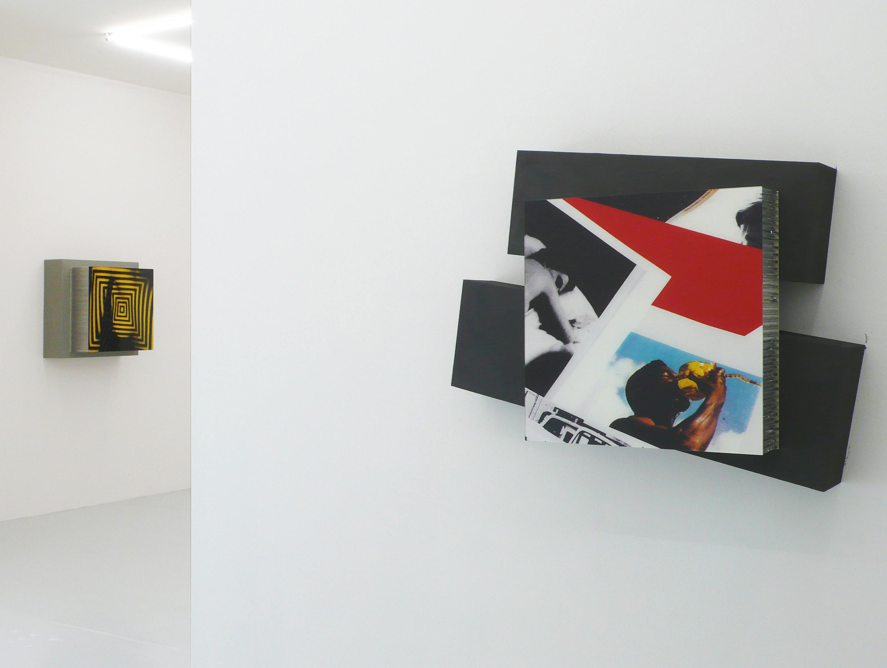 Harald F. Müller’s art might be compared to the way a DJ works; his mix of materials includes photography, painting and sculpture. Extensive research in archives and libraries leads to the choice of a few significant pictures that he uses unchanged. However, by decontextualizing them, he undermines the self-evidence of their subject matter; they become ambiguous. The artist enlarges the pictures he has selected to as much as four metres, printing them on conventional Cibachrome paper mounted on thin panels of aluminium. The pictures are not hung flush with the wall but on sculptural mounts so that they appear to be floating. When viewed in close-up, the halftone dots of the enlargement turn the photograph into an artwork that allows for different levels of perception, from the objective to the abstract. The same effect is achieved when Müller crops pictures of architecture so that the three-dimensional image is transformed into a two-dimensional plane (of colour). —Dominique von Burg