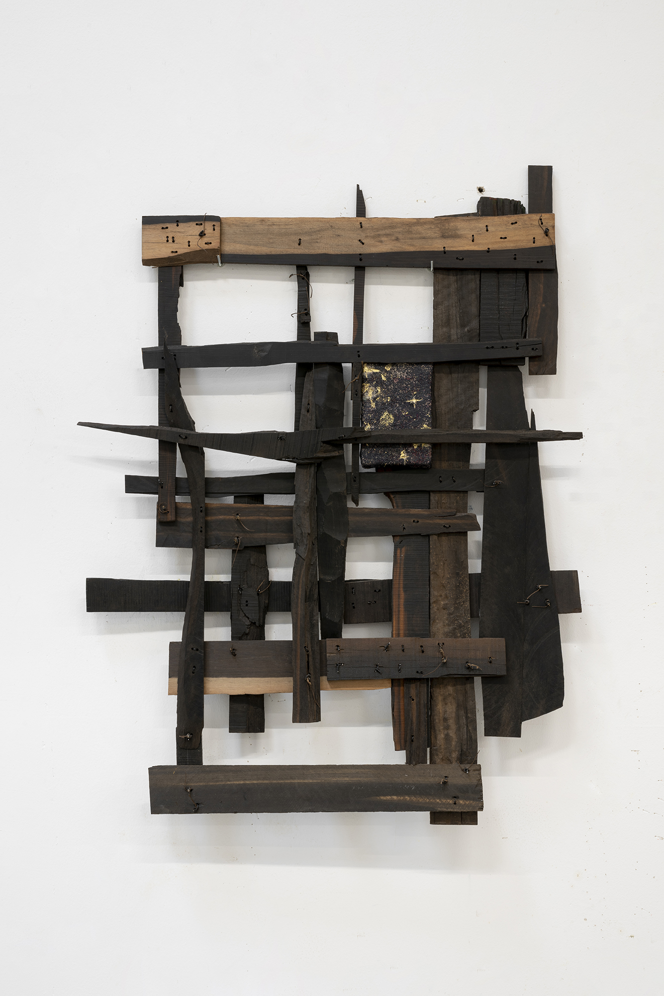 ebony, polychrome pine, oil on linen thread, iron and wax