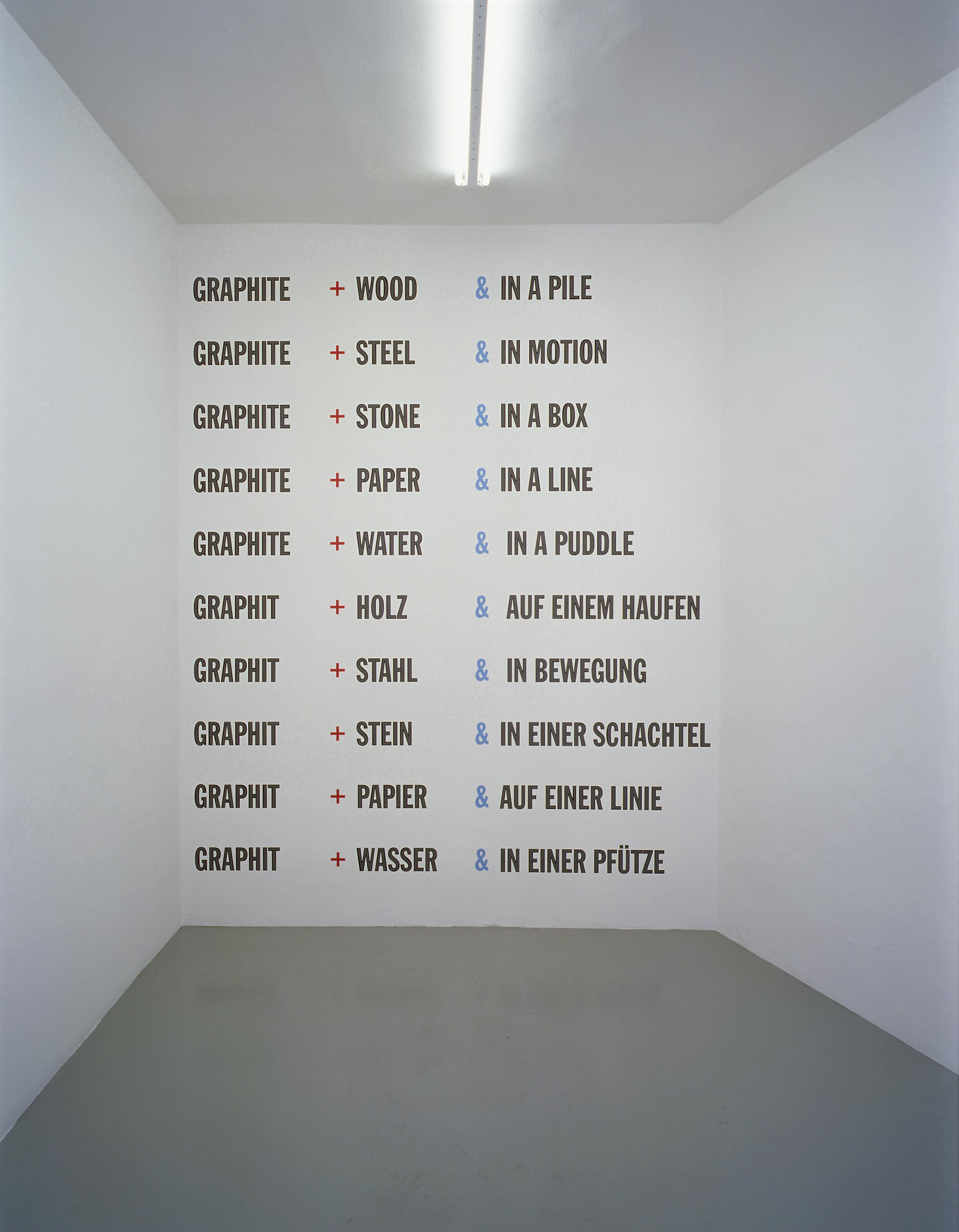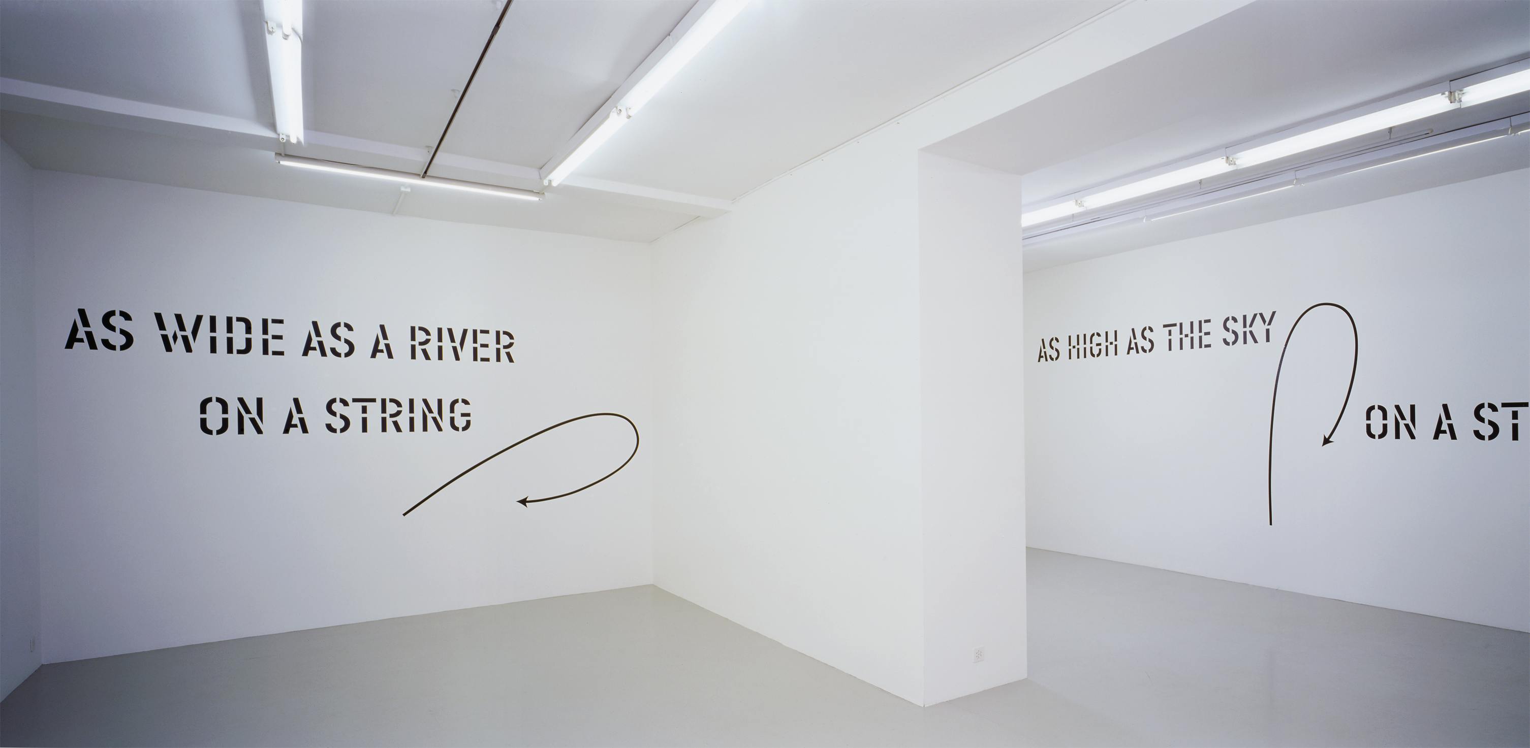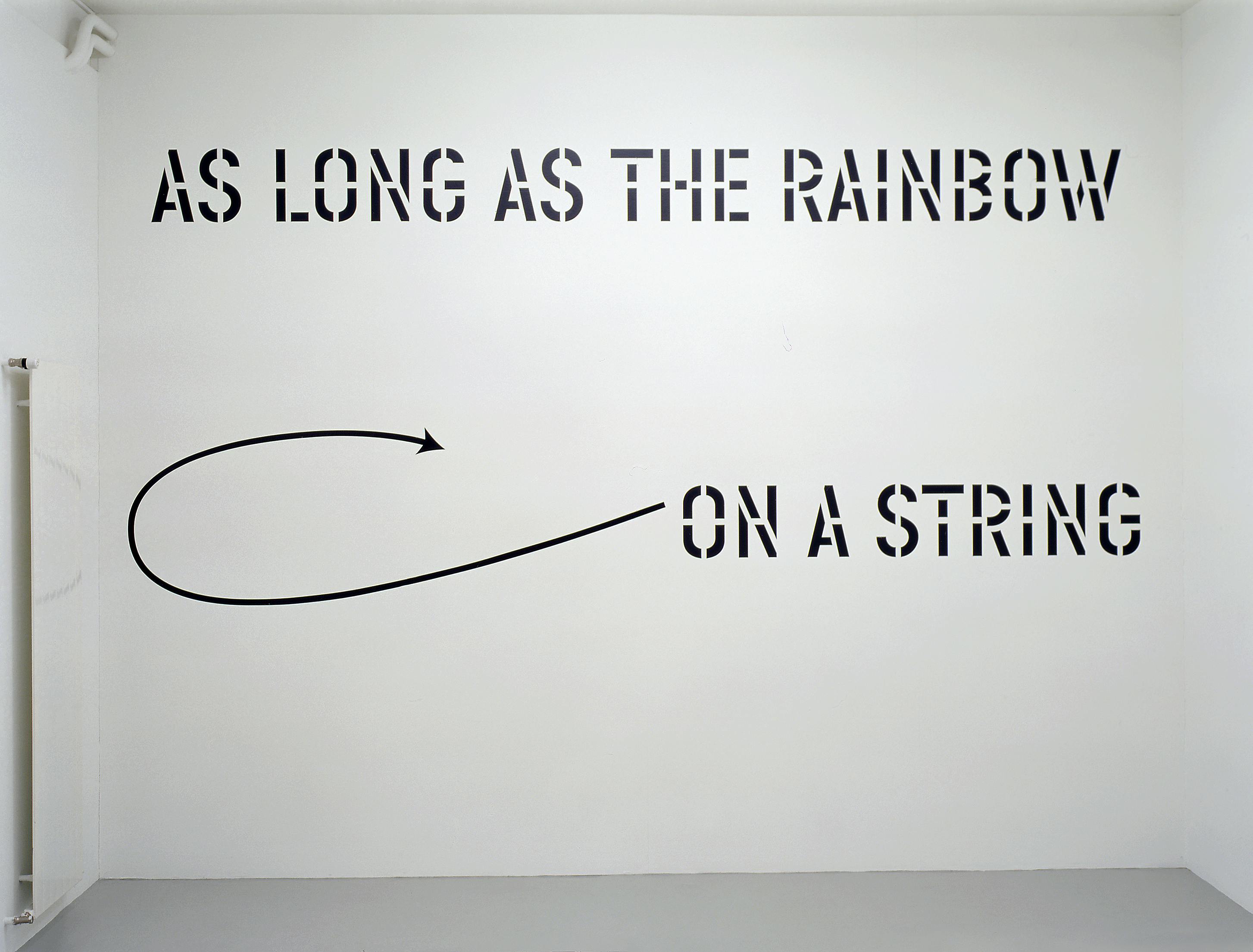 Lawrence Weiner was one of the world’s most influential contemporary artists. In his artistic practice, words and typographical signs replace the means ordinarily associated with artistic endeavor. Since 1968, he has devoted himself to the power of language, of written words that are cast or glued or painted on walls, on the ground or on entire buildings. The works take concrete shape in the context of their presentation: they generate mental spaces and relations in the minds of viewers; they are inseparable from their placement; words, place and viewer interact on location. —Axel Jablonski