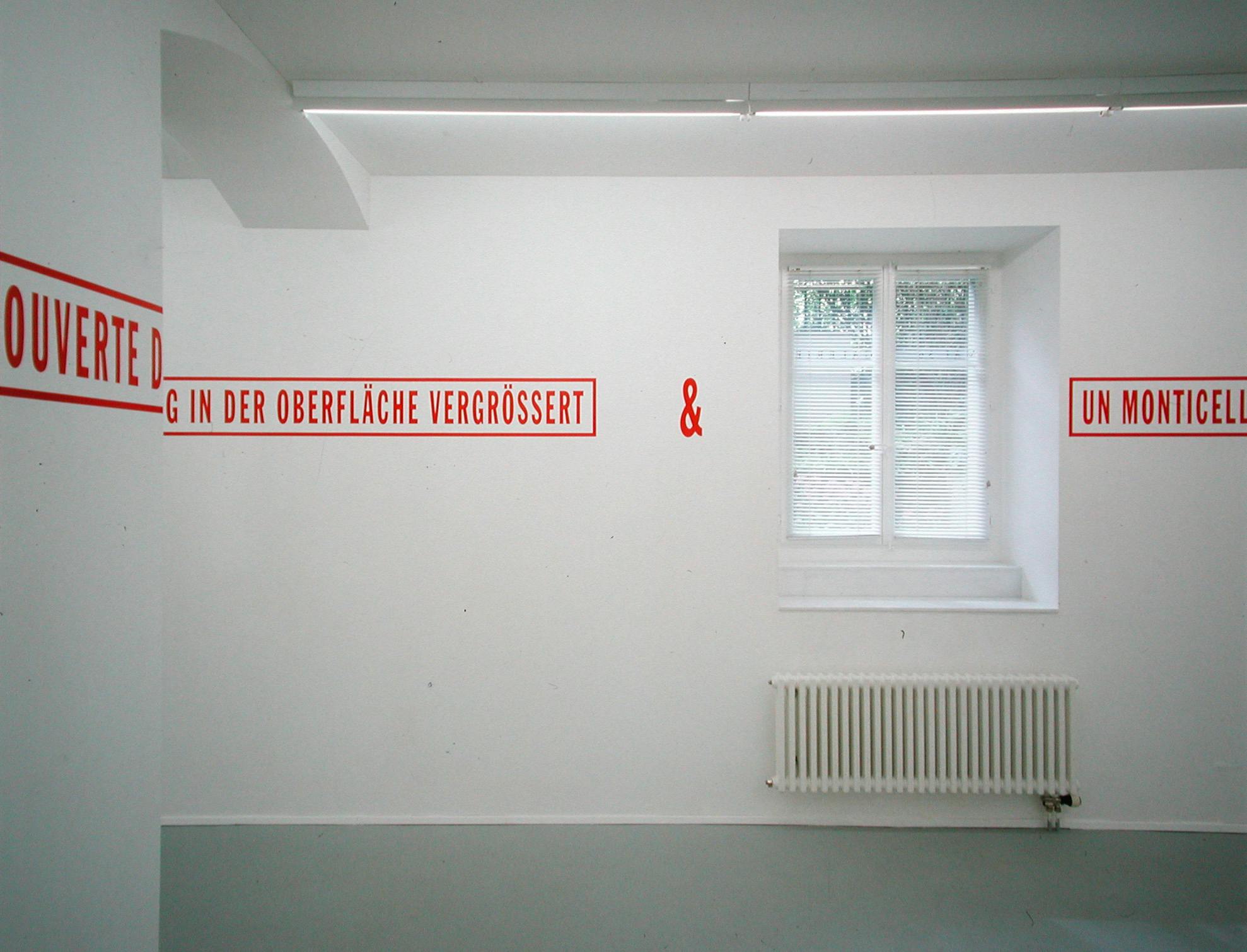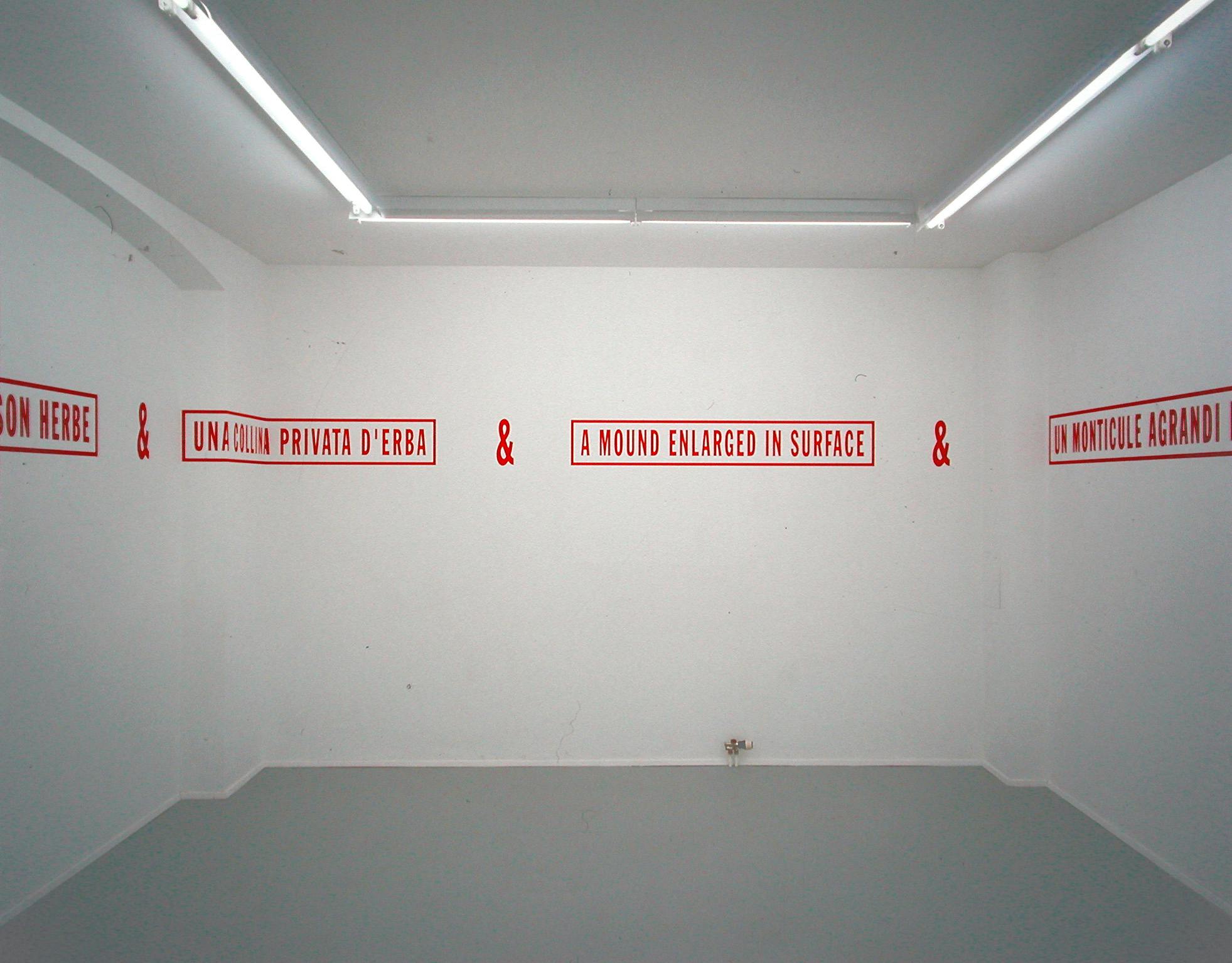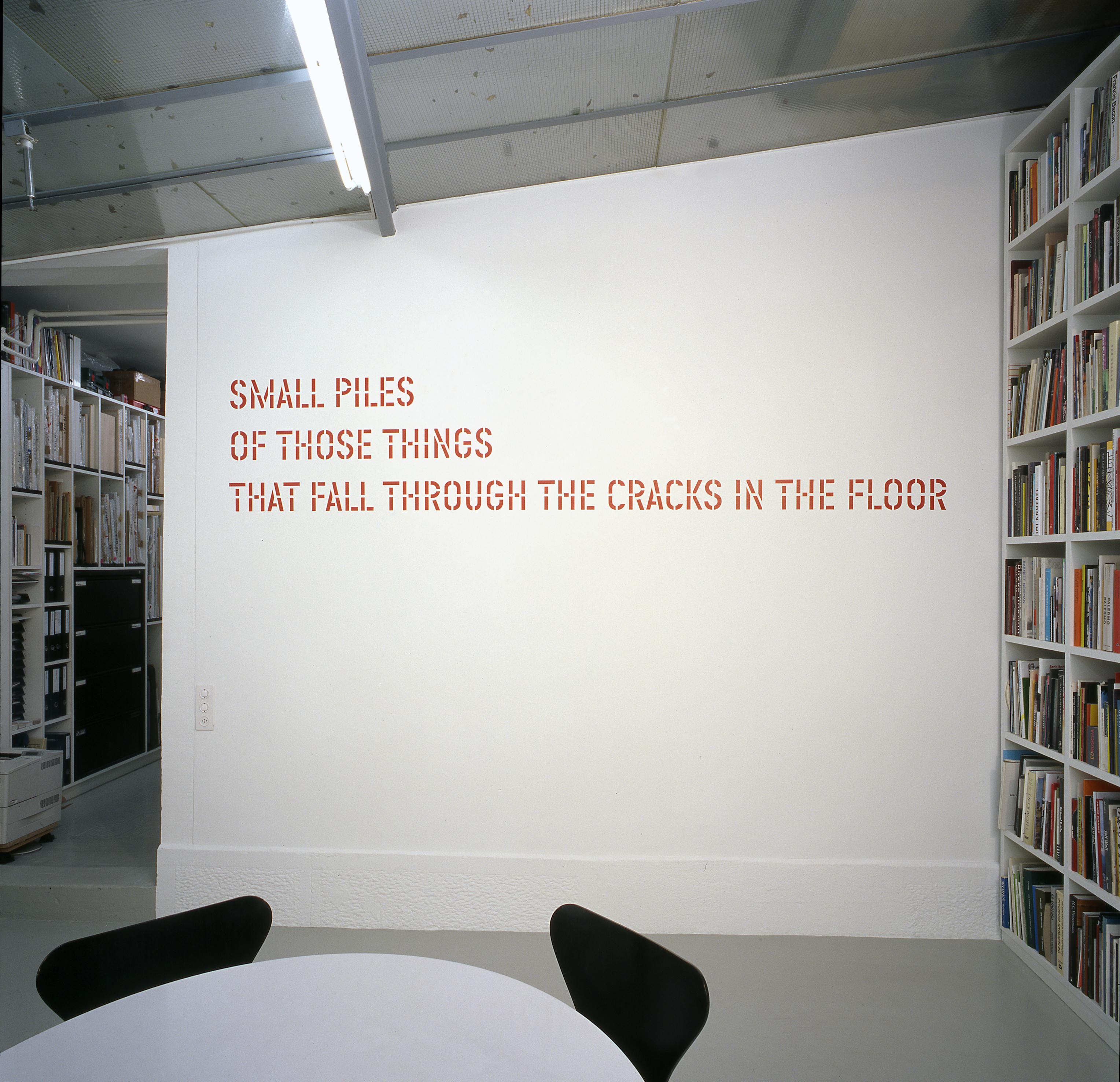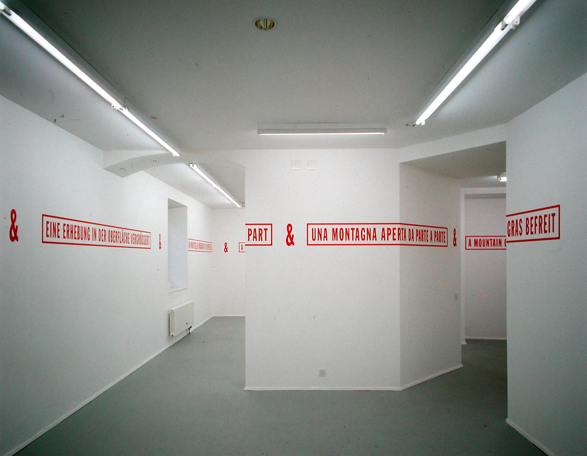 Lawrence Weiner was one of the world’s most influential contemporary artists. In his artistic practice, words and typographical signs replace the means ordinarily associated with artistic endeavor. Since 1968, he has devoted himself to the power of language, of written words that are cast or glued or painted on walls, on the ground or on entire buildings. The works take concrete shape in the context of their presentation: they generate mental spaces and relations in the minds of viewers; they are inseparable from their placement; words, place and viewer interact on location. —Axel Jablonski