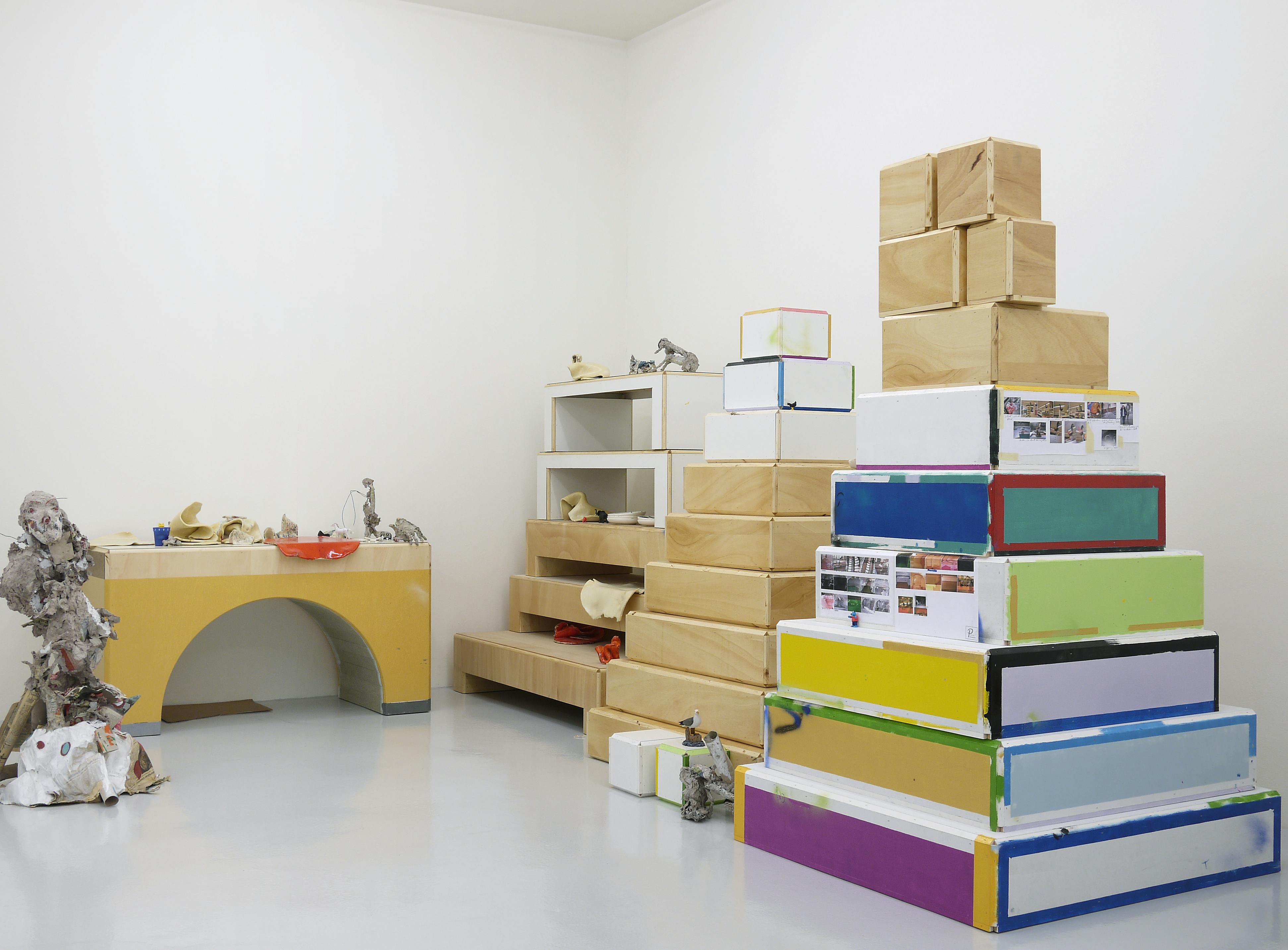 Manfred Pernice has created an oeuvre that escapes classification. As a master of precise ambiguity, he has a penchant for creating works that are almost but not quite autonomous sculptures, architectural appropriations, constructed models or meandering installations. He typically works with simple materials like plywood or particle board - or generally items you can find at a building supplies store or on the street.
