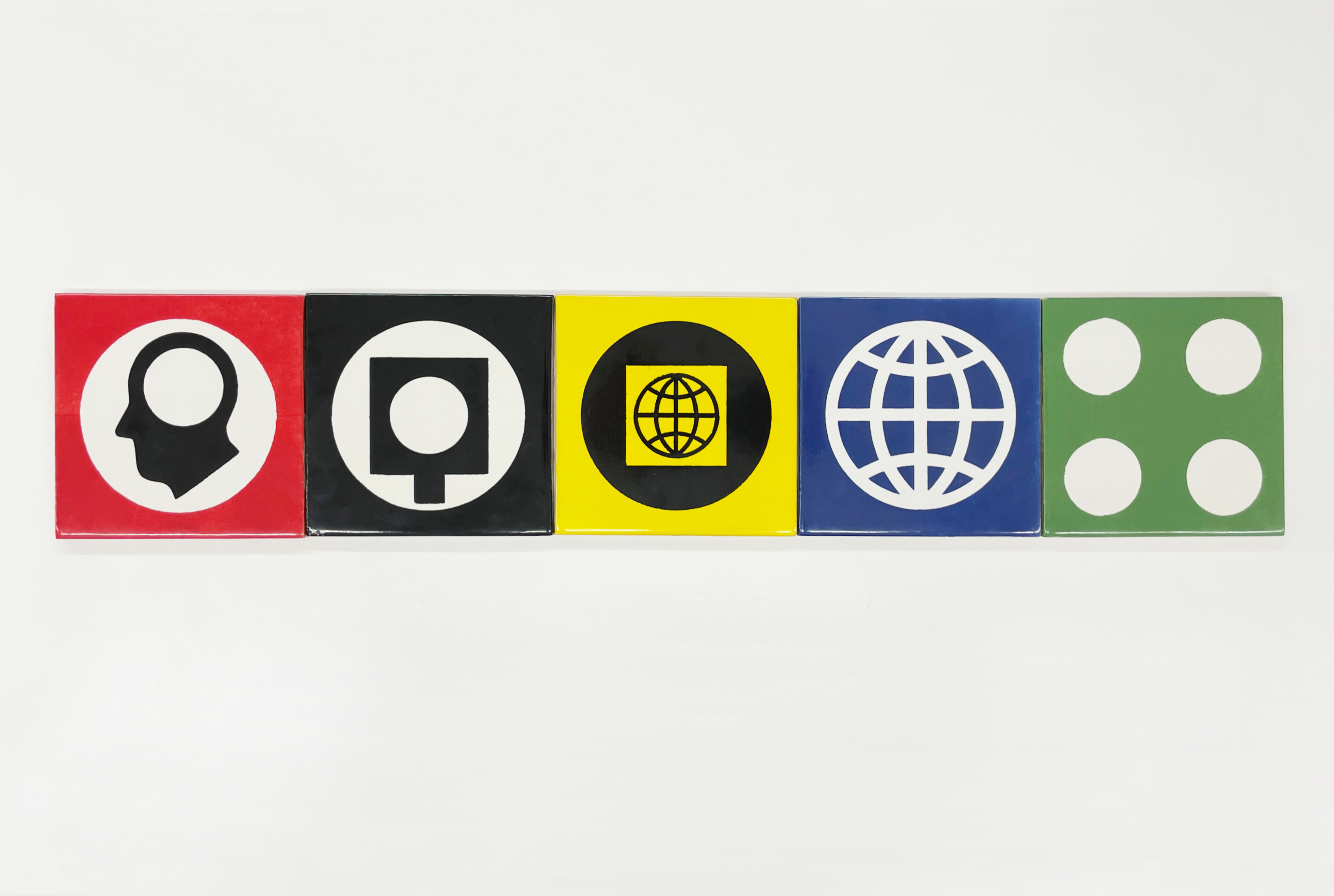 Since the 1970s, US artist Matt Mullican has been interested in models for explaining the world. He has developed a complex system of symbols consisting of various pictograms and colors as a means of tackling the question of the structure of the world, and with his system he aims to portray in symbols every aspect of the human condition in different combinations.