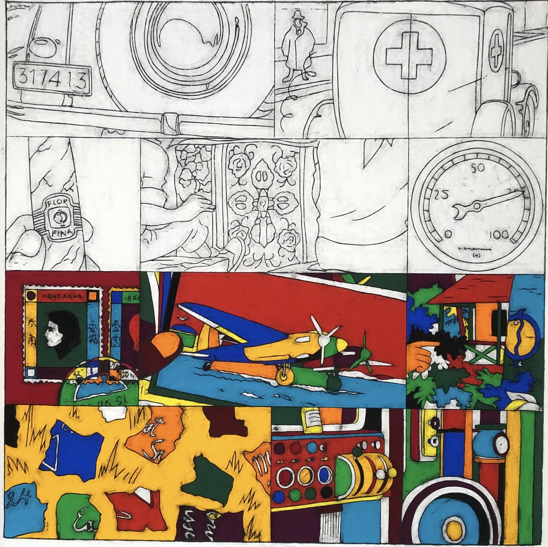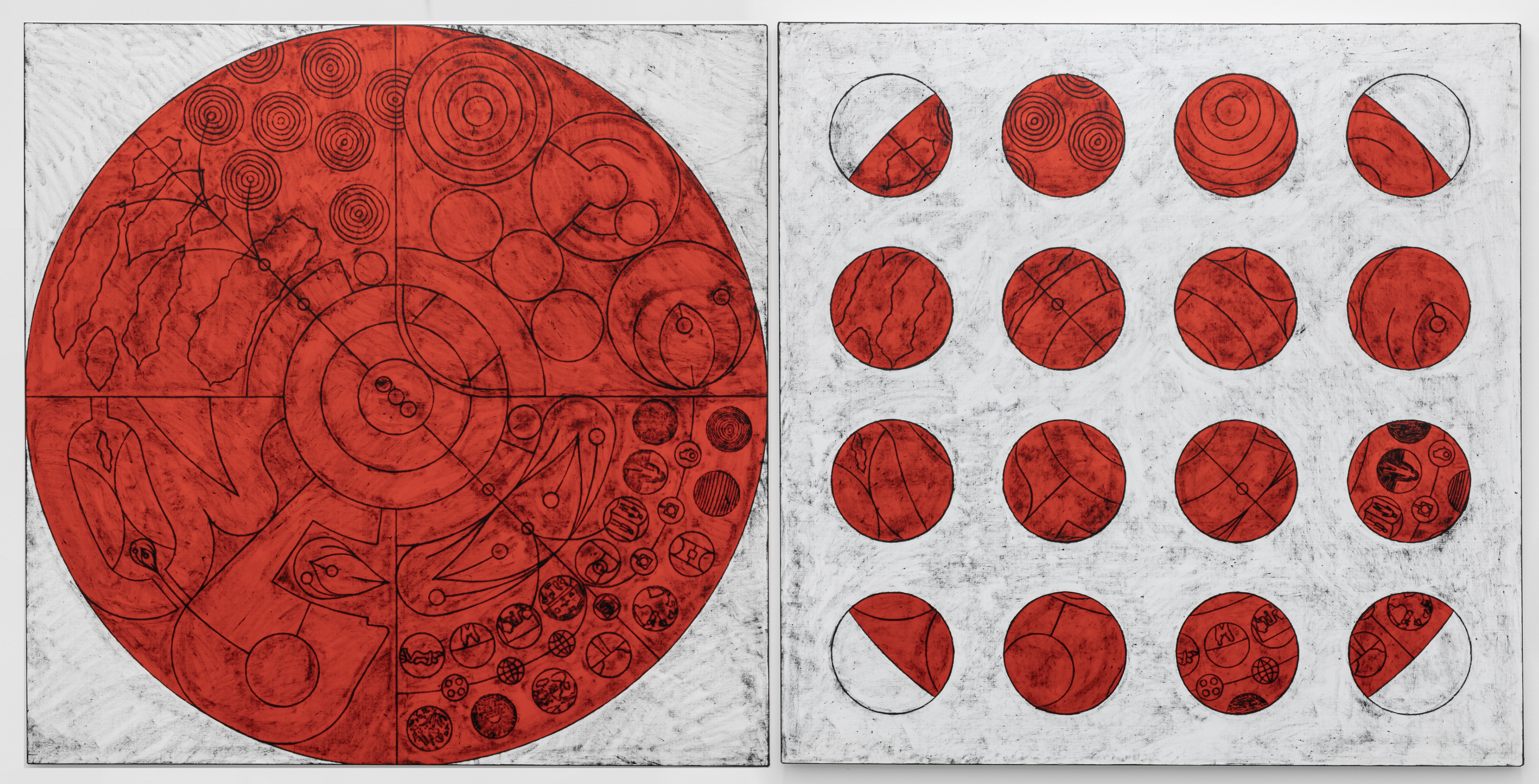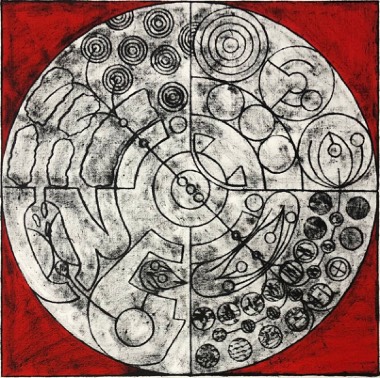 oilstick on canvas, rubbing | 4 parts, 100 x 100 cm each total 200 x 200 cm