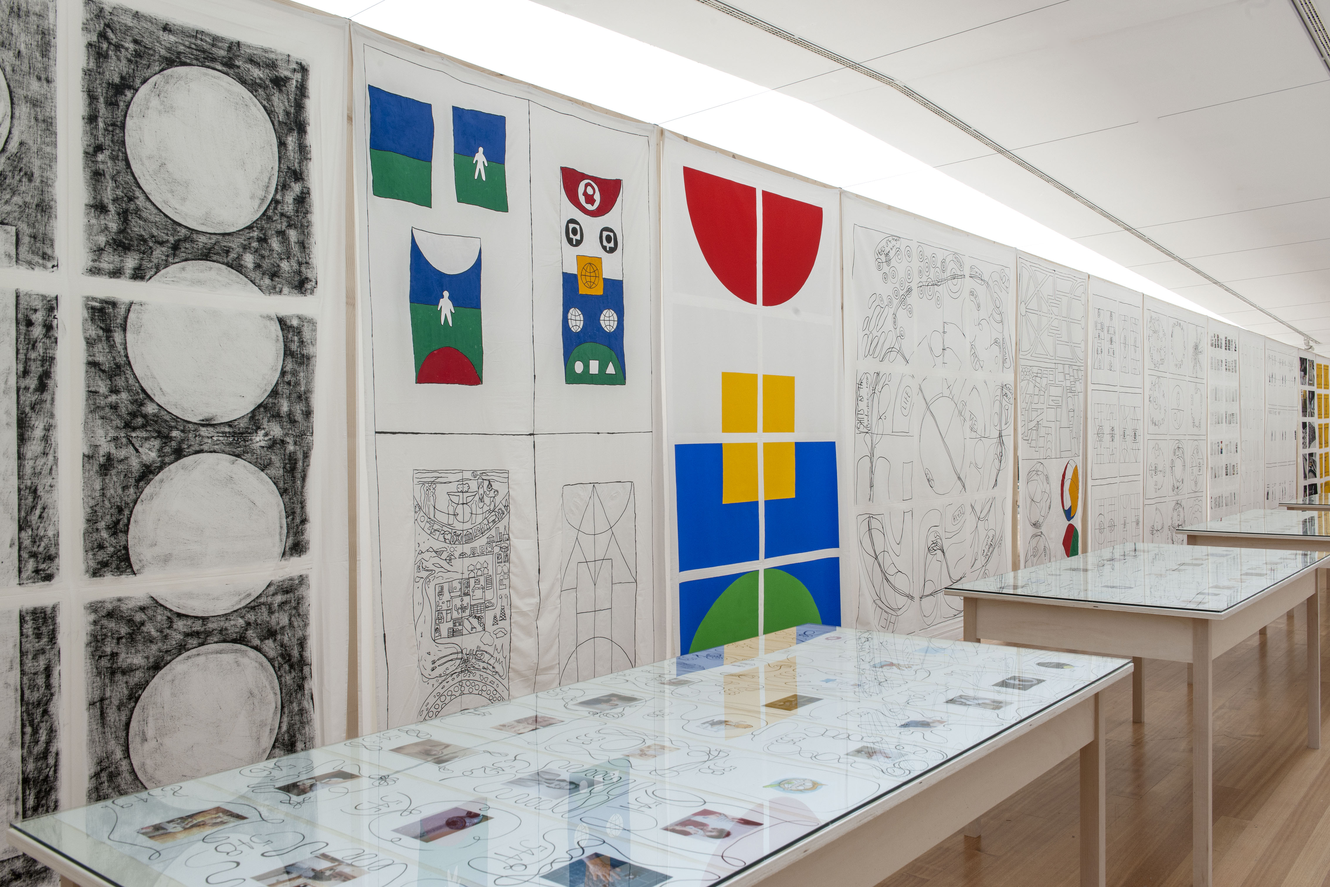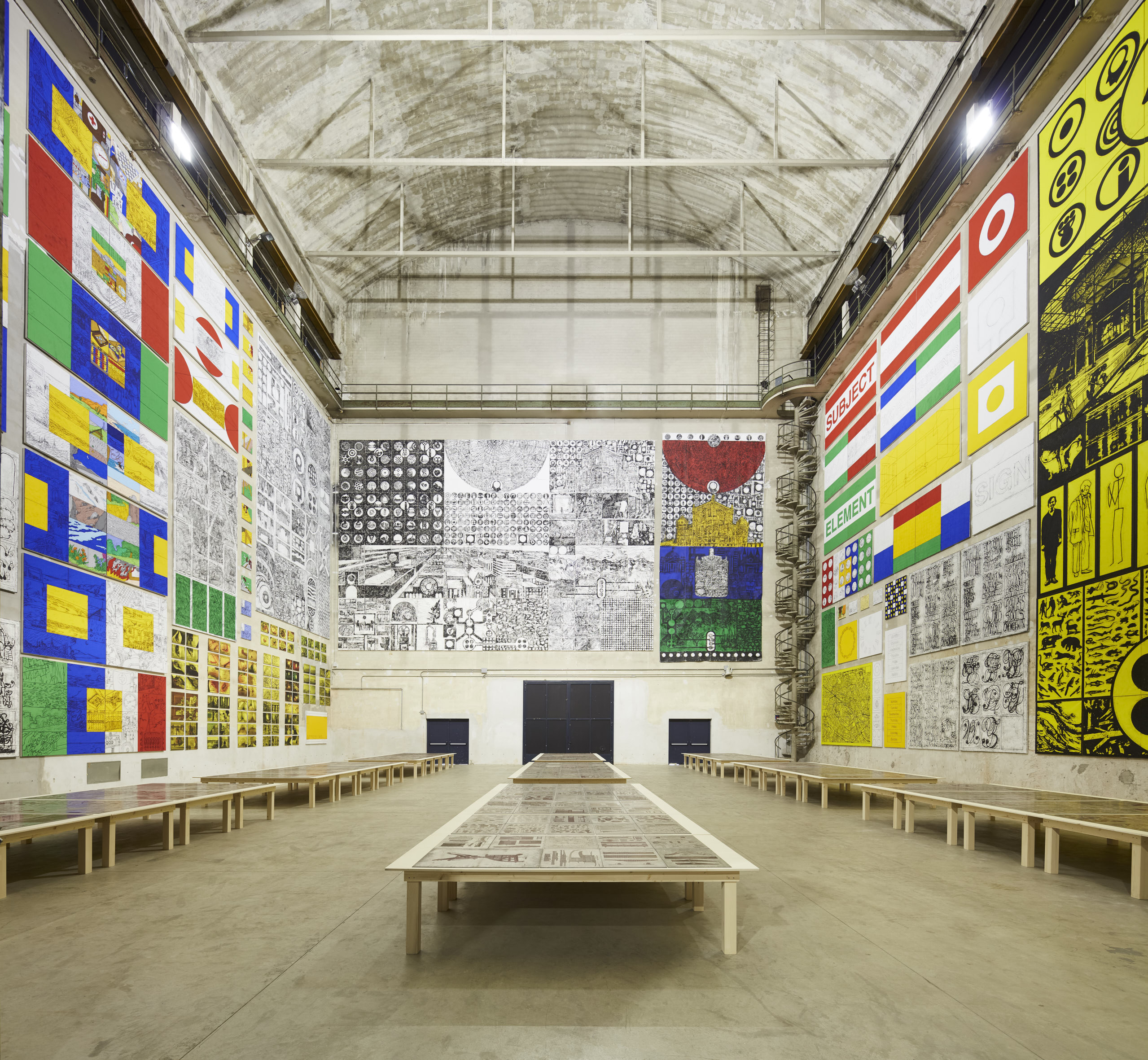 Since the 1970s, US artist Matt Mullican has been interested in models for explaining the world. He has developed a complex system of symbols consisting of various pictograms and colors as a means of tackling the question of the structure of the world, and with his system he aims to portray in symbols every aspect of the human condition in different combinations.