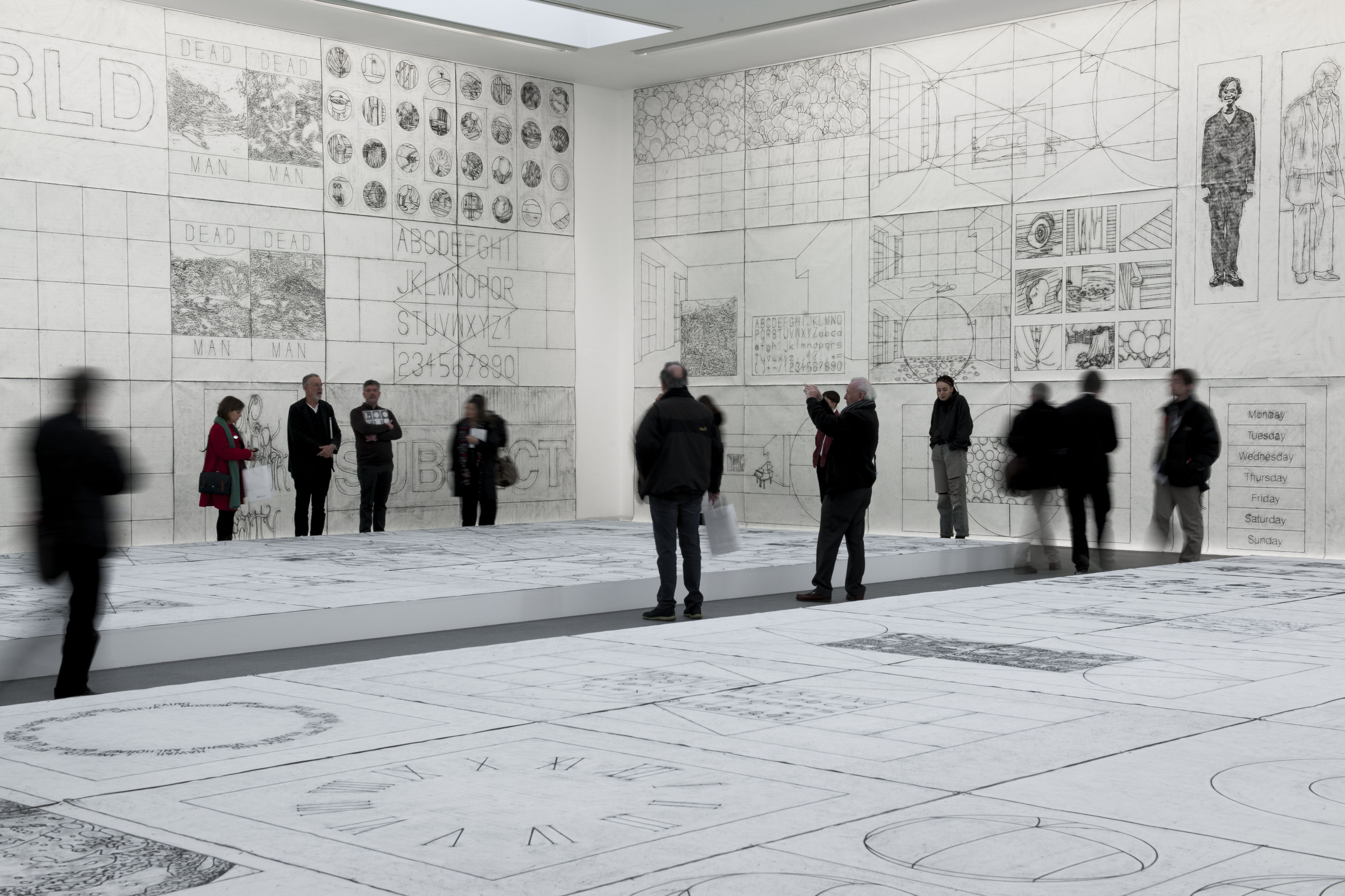 The model of perception that Mullican calls the theory of the five worlds serves him as a system of order for his method of working as an artist. It illustrates the relationship between the world and its representation. The artist is particularly interested in how we charge symbols and systems of symbols with meaning. —Nikolaus Bischoff