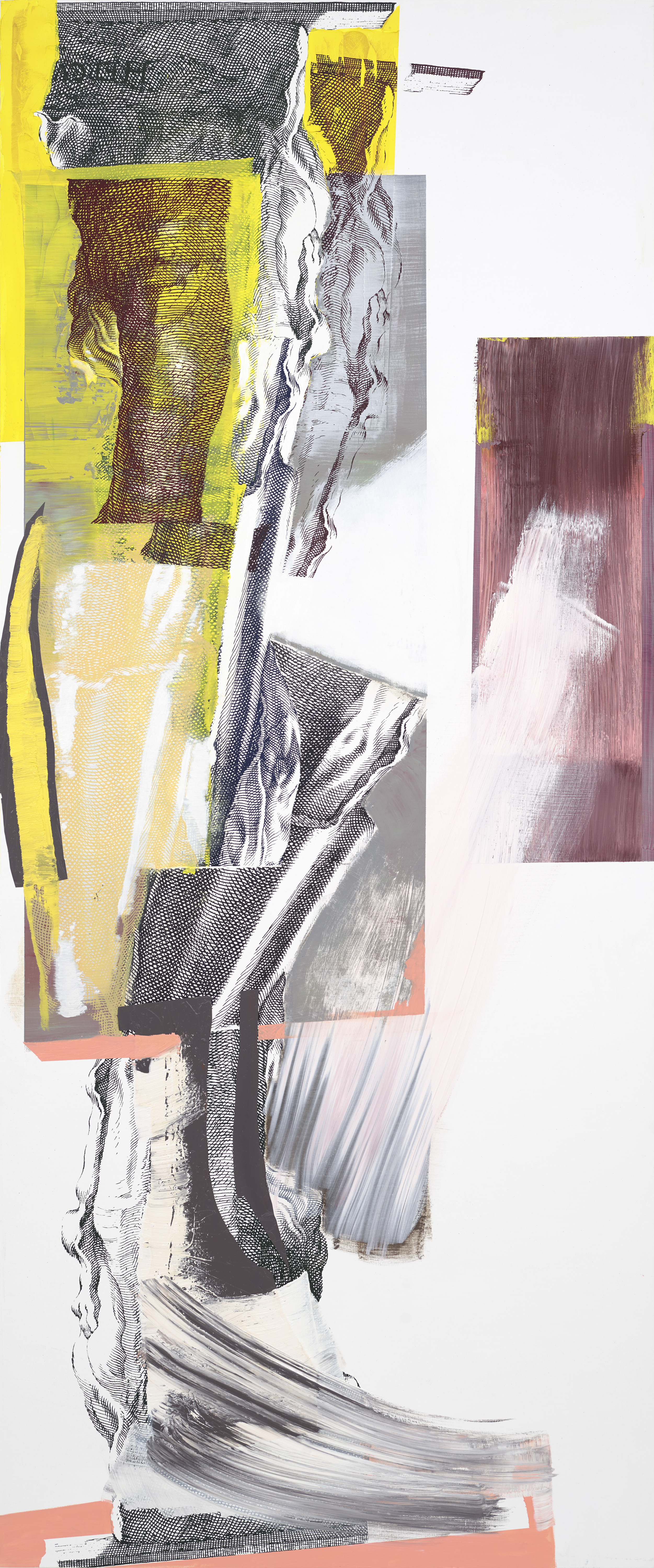 The paint converges, merges, creates paths and traces, leaping out of the blank spaces she leaves. Her paintings are bold and daring. Flowing, stocking movements inform the entire image, at times enhanced and complemented by rhythmic inputs and manual interventions. They follow an inner logic that looks perfectly clear, and yet remains utterly inexplicable. For some time now, Pia Fries has been appropriating structures from found images, which she transfers onto the carrier by silkscreen and then uses as the starting point for her works. —Axel Jablonski