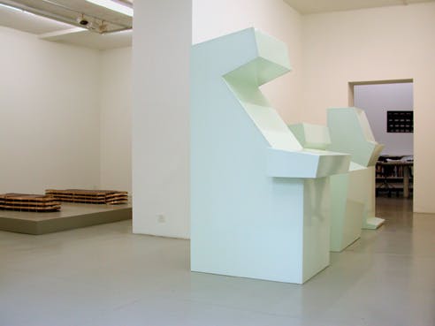 In her pieces, industrialization, mass production processes, and the laws of efficiency are brought up against the role of handmade artifacts and the sphere of the dysfunctional. McBride thus pushes the boundaries and the qualities of the white cube, a spatial modality that is often considered indispensable for the neutrality required to exhibit artworks. Once they have been inserted into these apparently passive environments, McBride's works question the allocation of functions that define and differentiate the museum, domestic space and the urban sphere. —Museu d'Art Contemporani de Barcelona