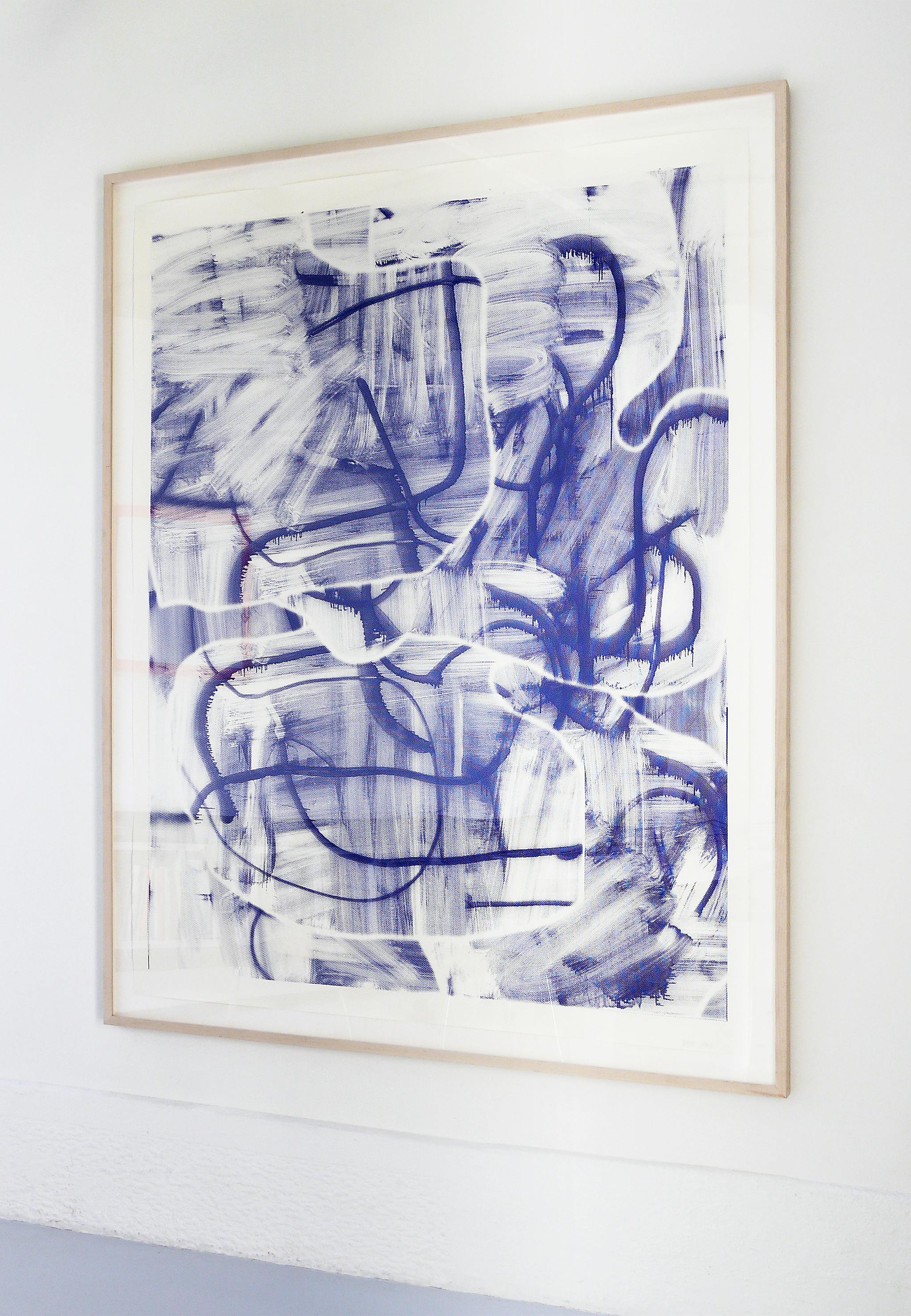 Bernard Frize (*1954 in Saint-Mandé, France) focuses on painting itself as the theme of his work. He plays with chance and lets the choice of colour, paintbrush and the format of the canvas happen by leaving it to nature or to his imagination. In this way Frize merely determines the structure or the way in which the colours are applied with simple brushstrokes on the canvas and expand over the surface. Even when Frize pours the paint directly onto the canvas he does not, in contrast to Jackson Pollock and his Drippings, take any decisions. His compositions can but do not have to develop; the only decisive factor is the immediate deposit of the paint on the canvas.