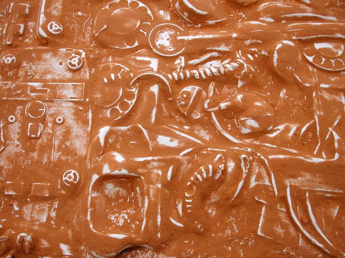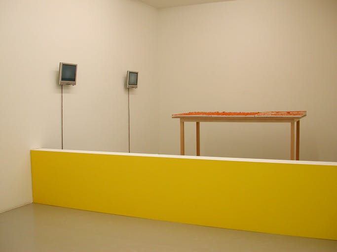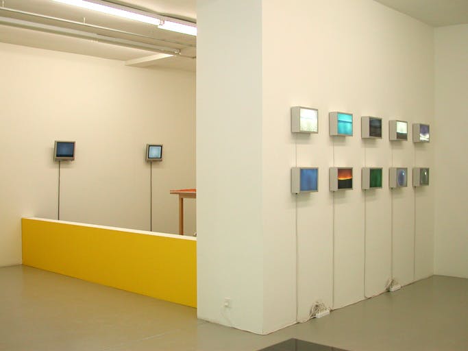 aneignenden Blick des Betrachters nichts entgegen, doch zugleich entziehen sie sich ihm in ihrer abstrakten bildnerischen Konstruktion, die zu ihrer auratischen Wirkung beiträgt. Die Hermetik der aus einer endlichen Anzahl von Entitäten konstruierten imaginären Welt, in der alles auch zum Zeichen werden kann, wird in vielen Werken von Matt Mullican deutlich. Mullicans Werk macht die Illusion der Transparenz der Zeichen anschaulich und untersucht ihre durch die jeweiligen Medien gefärbte Opazität, die ihnen ein durchaus beunruhigendes Eigenleben ermöglicht. [Text: Iris Wien]