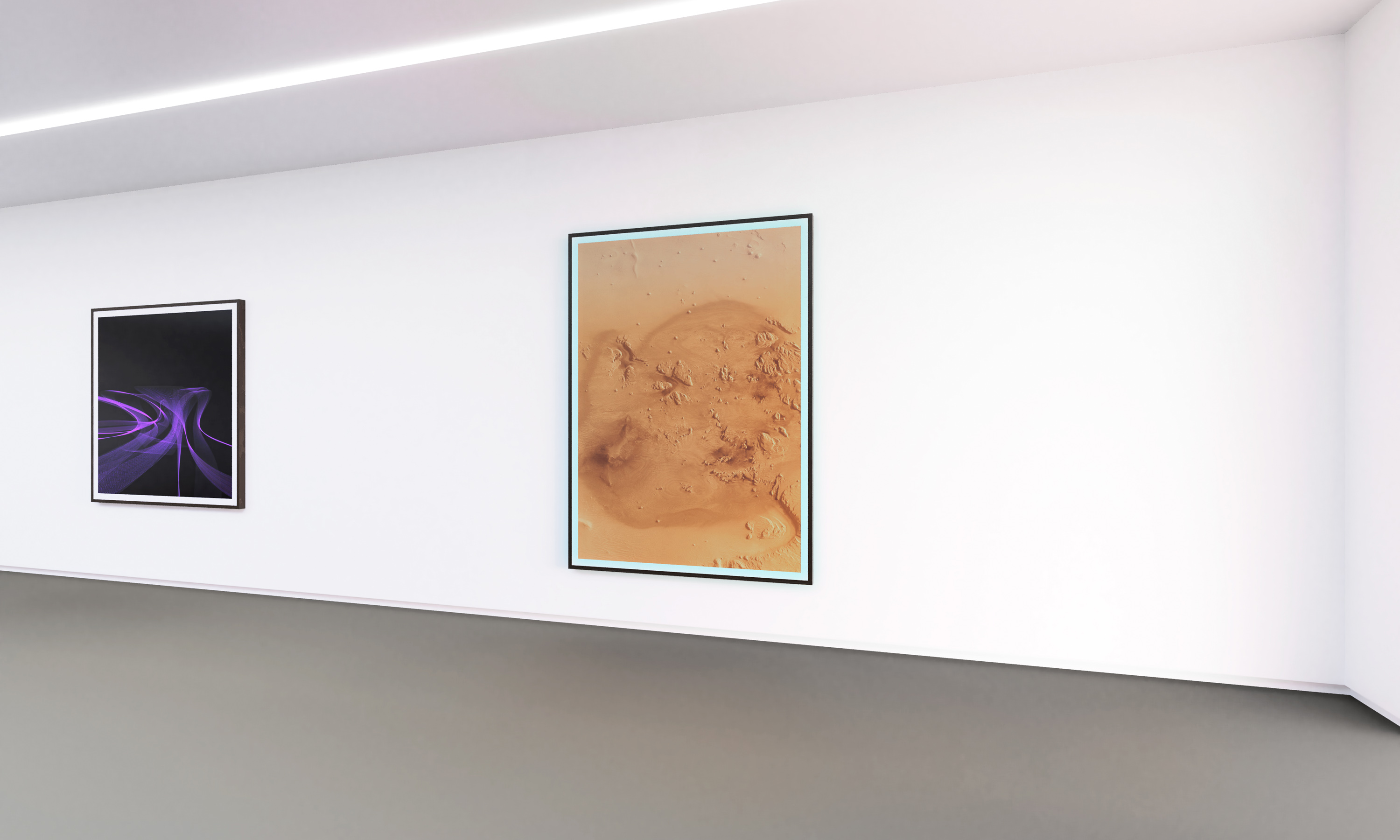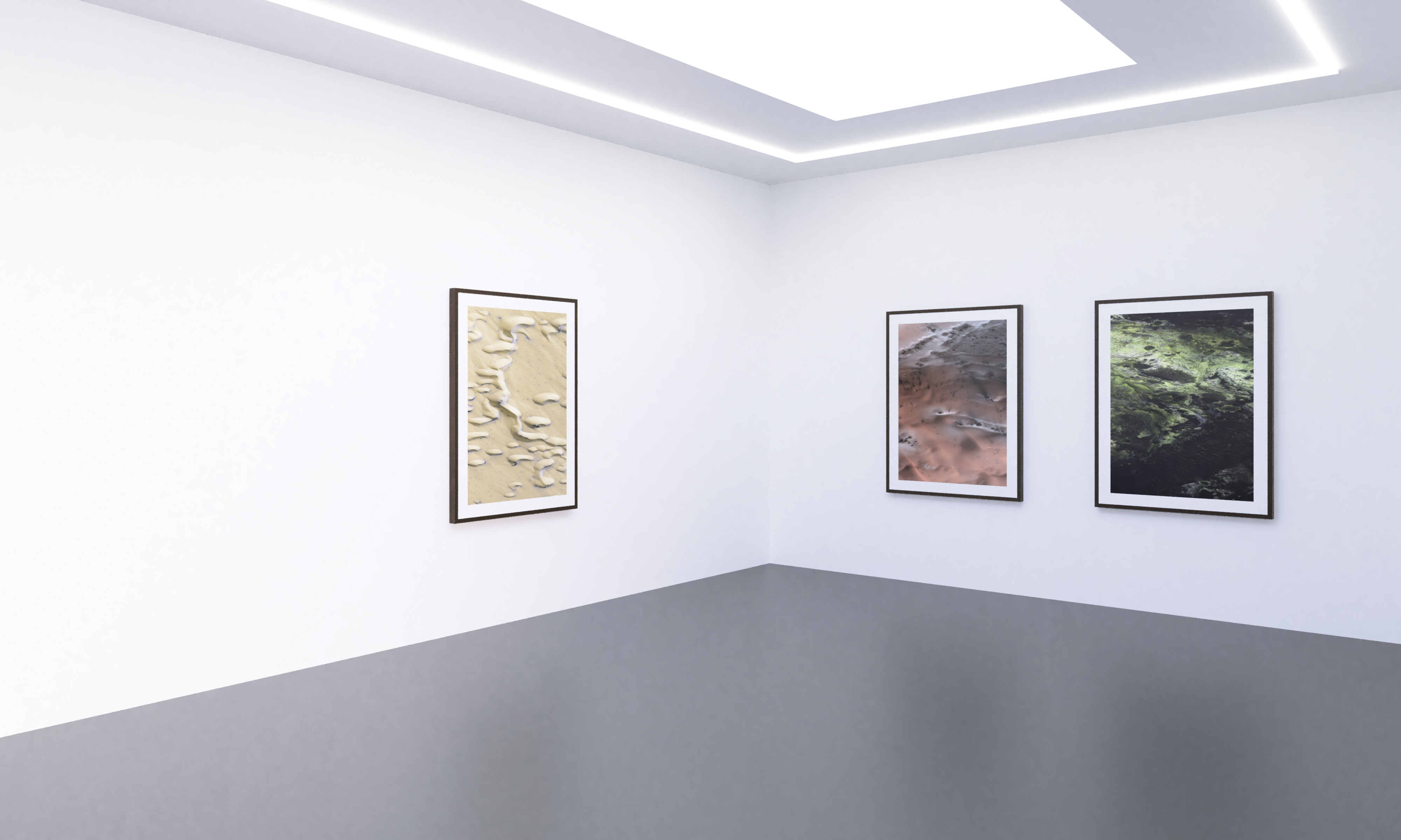 Thomas Ruff has regularly used scientific photographs as source material for his work and came across the NASA pictures while doing research into the image-generating potential of photography. He was utterly fascinated with the extremely realistic, naturalistic and yet strange photographs of a universe that exists outside the range of conventional human experience. In working with this material Ruff transformed the images taken straight down at a perpendicular from the orbiter into a slanted view. The resulting pseudo- perspective and the added color to the black-and-white shots emphasize the extraordinary feel of the landscapes but without changing their character. The ma.r.s series once again demonstrates the Ruff’s ability in exploiting state of- the-art technology in striking combinations of matter-of- fact documentation and formal elegance. His approach is a collaboration between a scientific spirit and imagination that spans a few centuries.