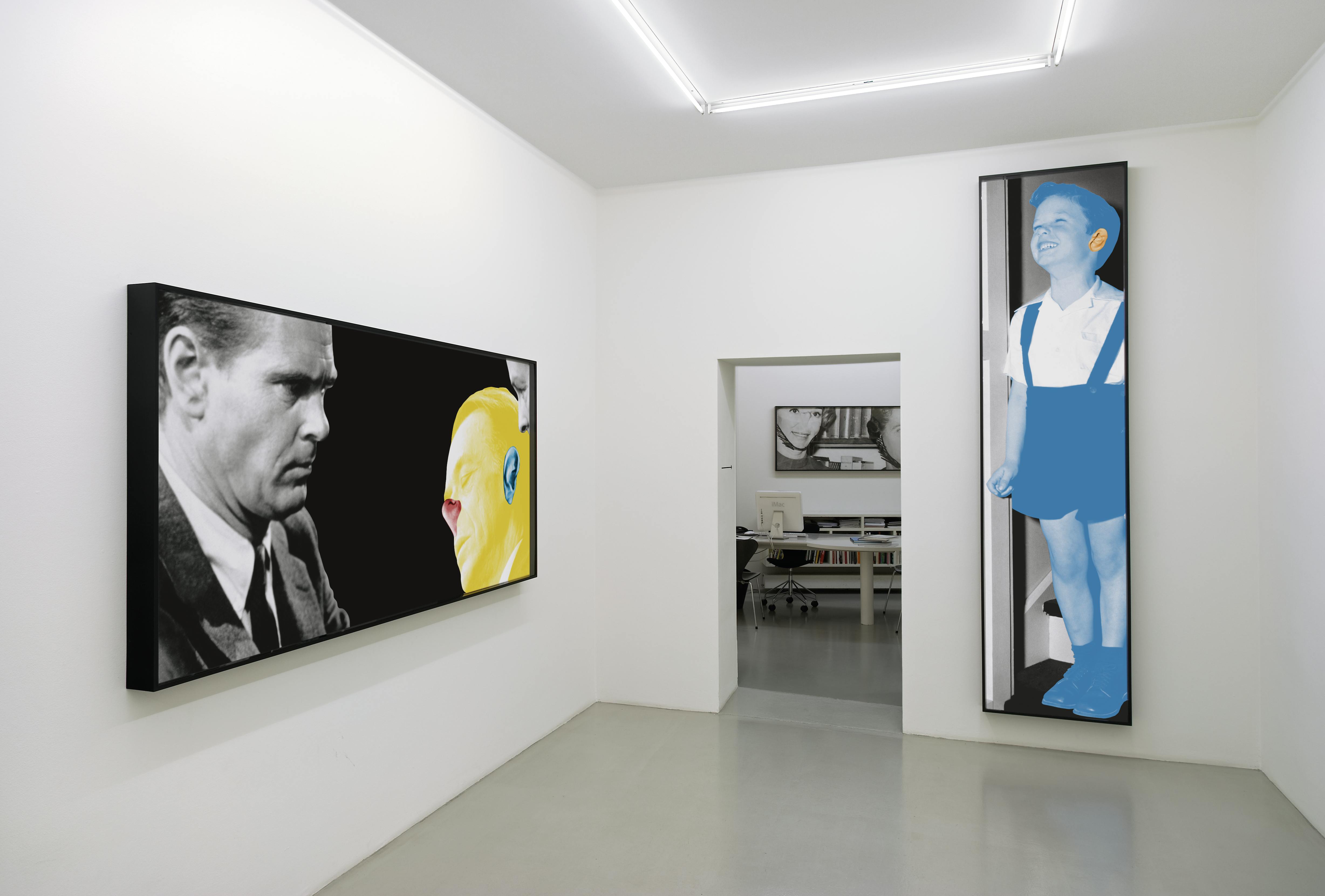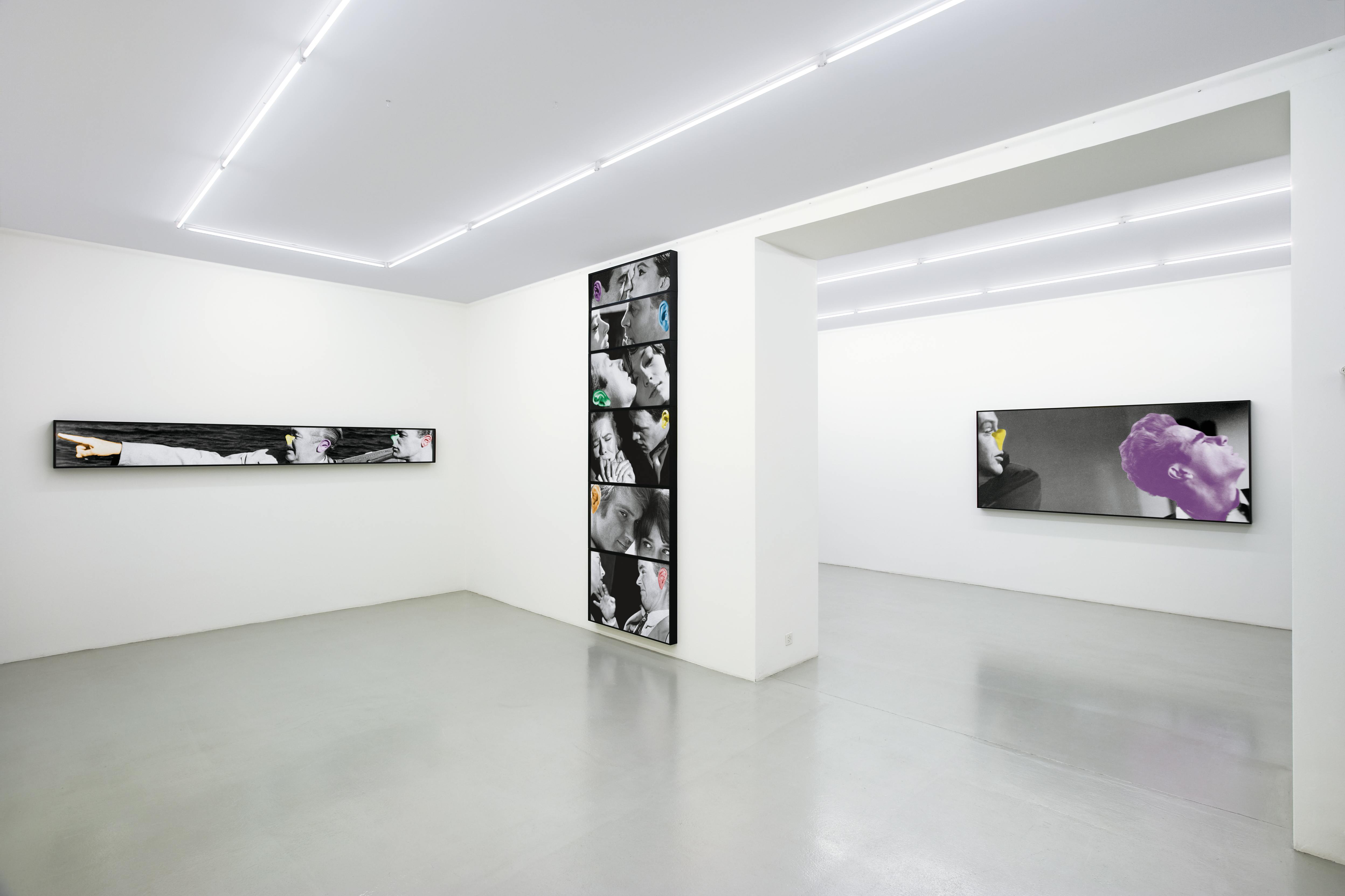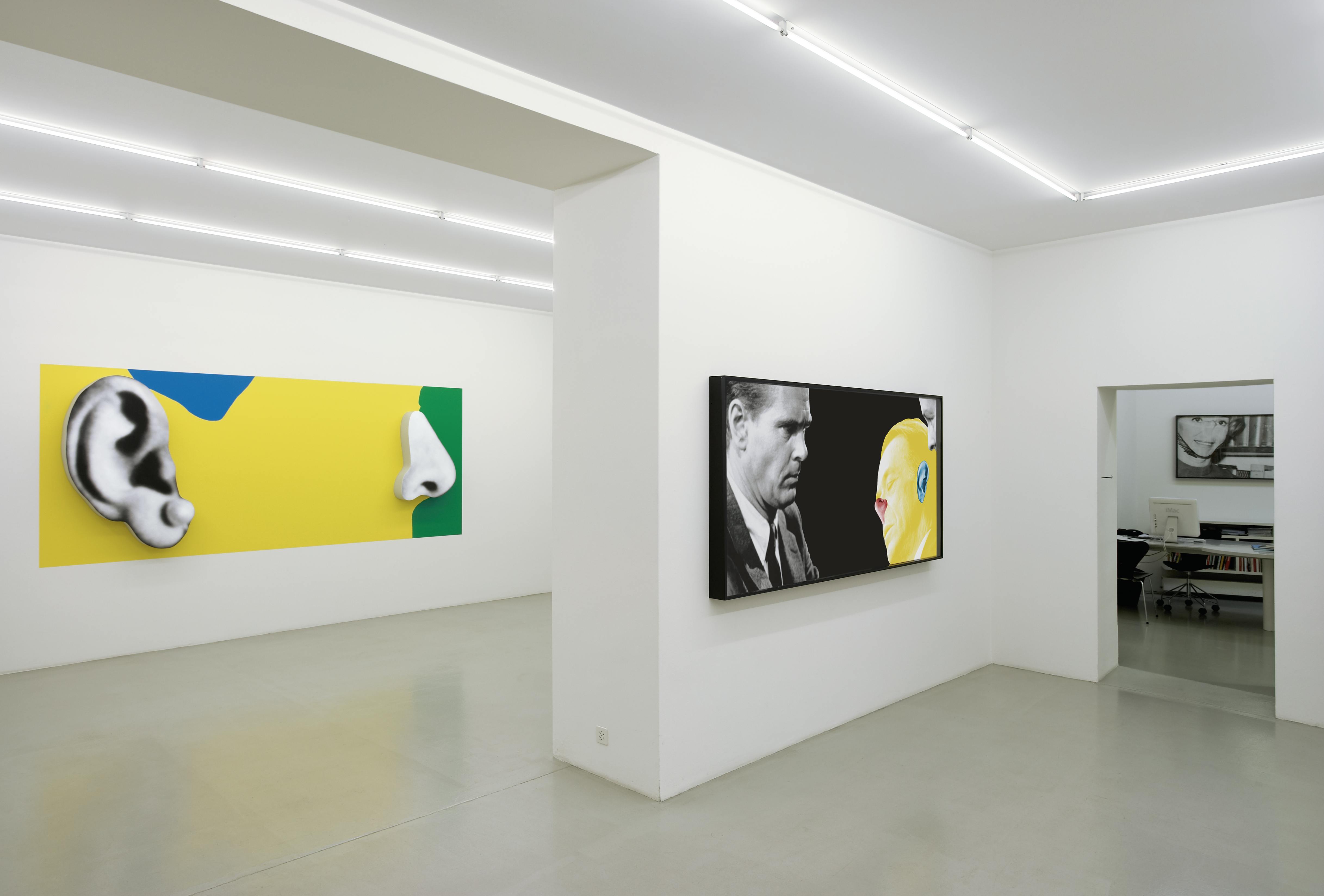 The exhibition continues John Baldessari’s latest series of “Noses & Ears, Etc., Part IV”, a group of overpainted, digital photoprints. As the title implies, the new series highlights noses and ears, with coloured circles obscuring the rest of the face. While the isolated representation of eyes and lips stands in a solid art-historical tradition - we need only think of the eyes on Nepalese temples or Dali’s lip sofa - there is something irritating, strange or even eerie about lone ears and noses. By limiting himself to noses and ears, Baldessari confirms the humour of his approach, but also restricts human identity to a minimum. When Baldessari blocked out faces from Hollywood film stills with coloured circles in the 1980s, he was already defying our media-driven habit of wanting to interpret the expressions of these faces according to traditional codes. Concealed faces reduce human identity to a minimum. And that is equally true of isolated ears and noses, as long as they are not associated with brutal kidnappings or physical deformities. Obscuring a face, or focusing on ears or noses, negates individuality, transforming an identifiable subject into an unidentifiable object. It bars the pictures from interpretation while simultaneously offering an opportunity for unbiased reading, for insight that transcends our media-programmed inventory of images and enables the viewer to gain a new outlook on the world.