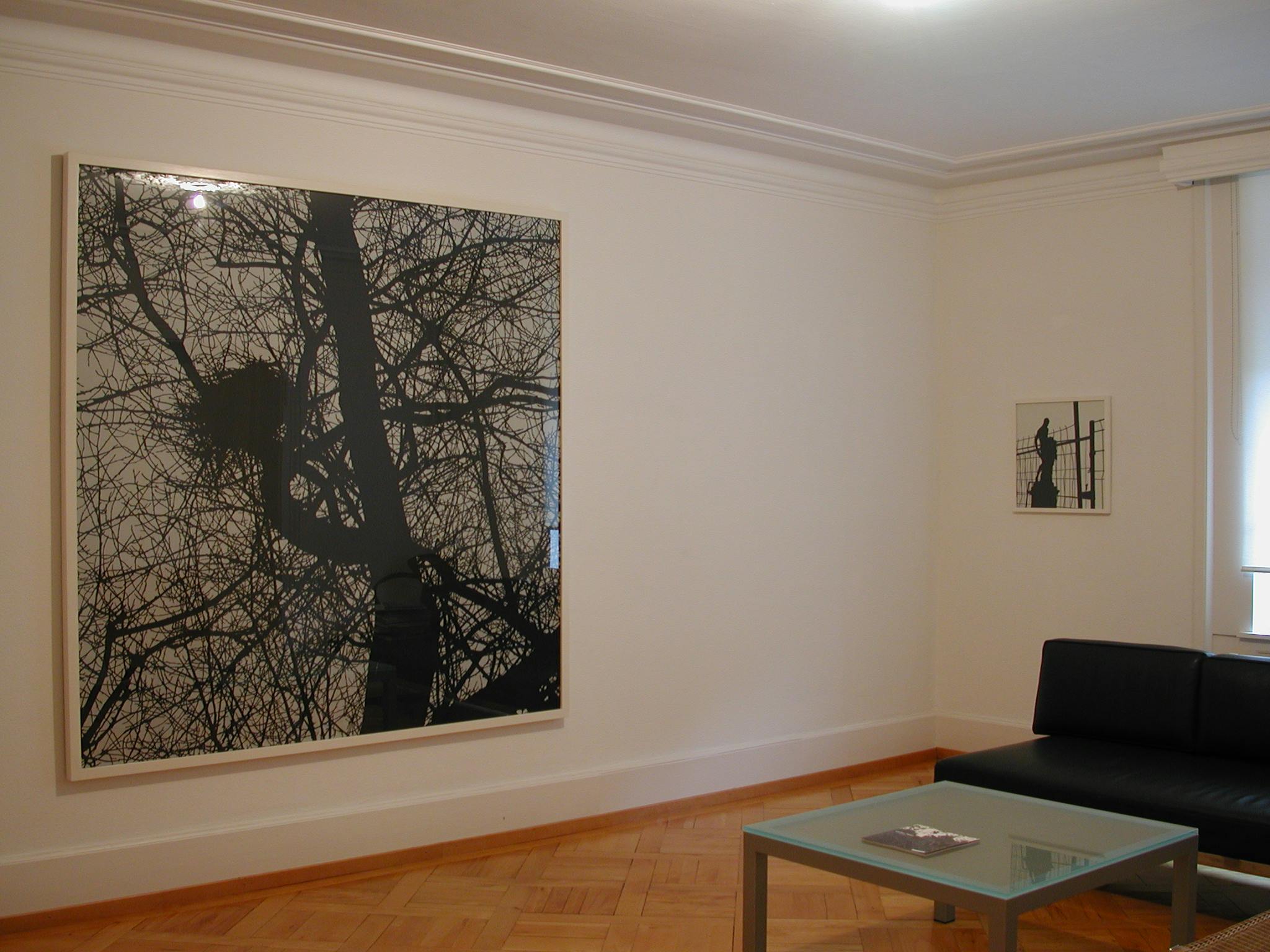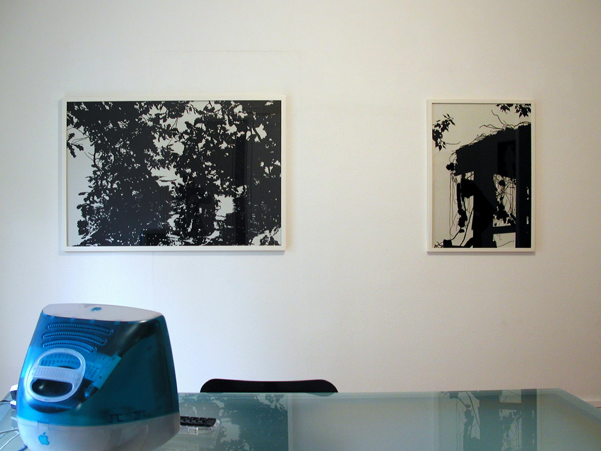 Stefan Thiel has made quite an impact with his encyclopaedic work The 120 Days of Sodom or The School of Debauchery, 1994-98, in which he literally transcribes the works of Marquis de Sade into braille. In his new works Thiel again uses a binary system: he transfers photographs (increasingly his own) into silhouettes. The harsh black and white contrasts in his pictures lead to an intensified precision as well as to an aestheticism of the portrayed. Hereby their symbolic quality becomes apparent, yet again is infiltrated by Thiel’s choice of objects. He shows us everyday situations, details of the countryside and citylife as well as single objects. Though sceneries may be populated, no relationships of a narrative nature are formed.
