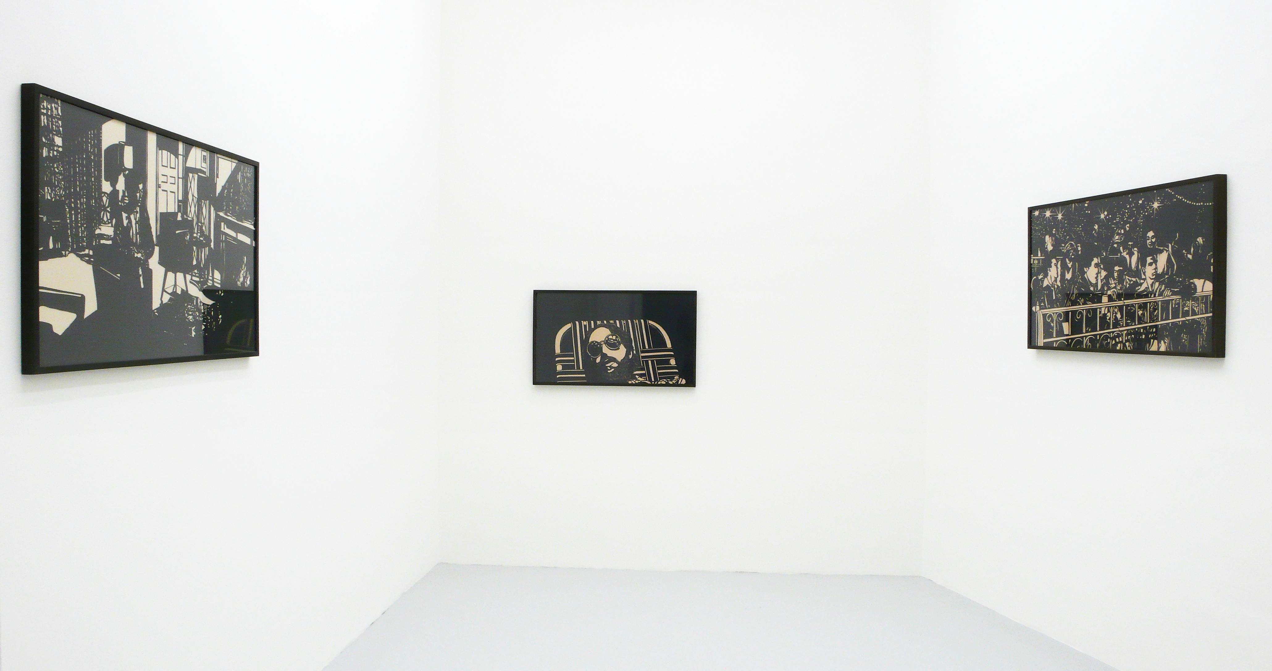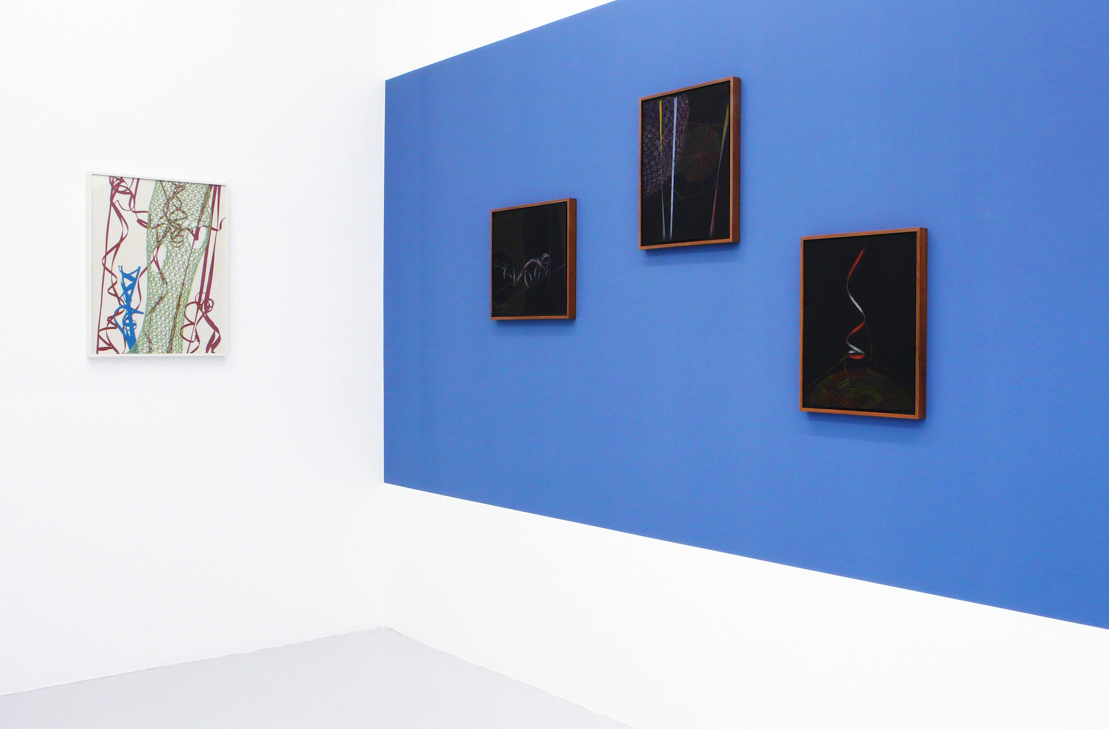 Stefan Thiel’s interest in paper cut-outs is inspired by the complexity of this artistic device as well as its potential in such fields as performance, drawing, photography and decoration. The sources of his images are his own photographs as well as existing film material. The subject matter of the cut-outs and drawings, presented in the exhibition as an installation, draws largely on the artist's multifaceted repertoire of motifs. The exhibition might therefore be described as a kind of collaged remix, in which Thiel introduces variations on familiar motifs such as wire mesh, fishnet tights, paper streamers, spiderwebs and diamonds. These may be fragmented, placed in different contexts and executed in a variety of colours. The drawings are closely related to the paper cut-outs. Since they show the back of the silhouettes before they have been cut, Thiel considers them a preparatory stage. By drawing on black paper, he deliberately restricts his potential palette inasmuch as the choice of colour depends on its ability to assert itself against a black ground. In his own words, "This formal aspect follows the idea of composing a space of light in a black plane. Being in colour, the drawings stand in contrast to the black surfaces of the paper cut-outs that I’ve been making almost exclusively for the past 10 years."