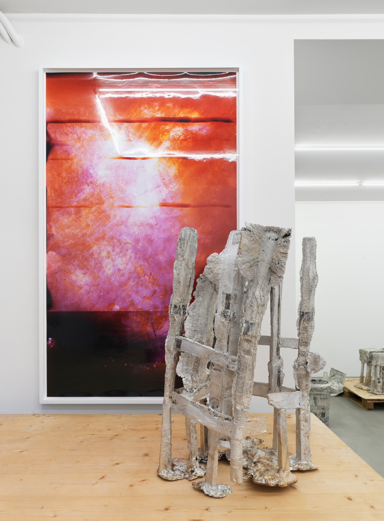 Raphael Hefti’s experimental approach to sculpture is fueled by a fascination with industrial and post-industrial processes, which he reclaims, subverts, and transforms with an almost alchemical precision. His artistic practice is driven by a deep curiosity to reveal the inner mechanisms and structures of objects — both industrial and organic. In dialogue with industries and specialists, he investigates the fragility of materials by interfering with their original composition and exposing the hidden truths embedded within conventional techniques. At the core of his work lies a joyful fascination with uncovering hidden processes — whether chemical or industrial — while poetically celebrating that no-man's-land tension between control and chaos, functionality and failure