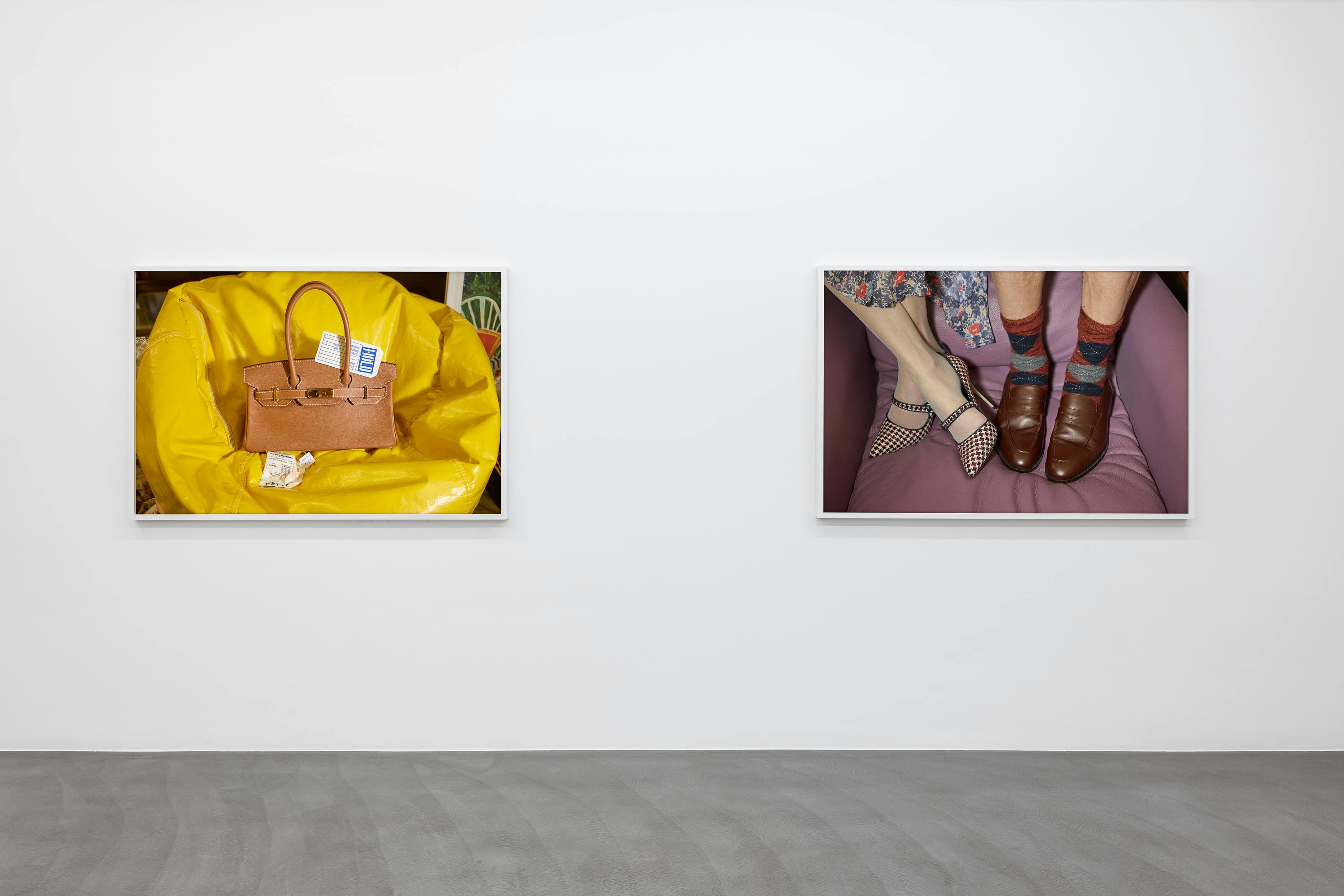 Many works in Sensible Shoes began in commercial settings, where accident and art direction meet. A self-portrait emerged when a scheduled model canceled and Ethridge stepped in; others, like the Hermès Kelly, originated from a meticulously planned shoot for Palmer magazine. ...However because it was shot at a thrift store in Palm Beach the juxtaposition of a cheap yellow beanbag with a the luxury hand bag was a spontaneous, unplanned gesture.