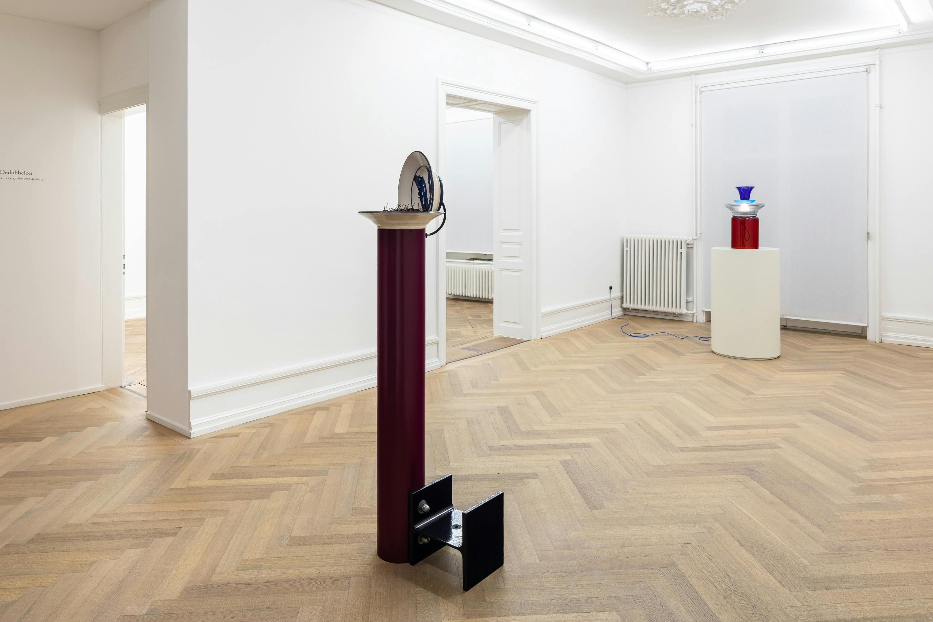 Throughout the exhibition everyday objects are freed from their typical functions and are reassessed through their recontextualization. Koenraad Dedobbeleer constructs references that act as perceptual traps. The artefacts we encounter here, may appear familiar but may also have the ability to unsettle. They are riddled with subtle allusions, ironic commentaries, and art-historical references, designed and arranged in response to the architecture in which they are placed.