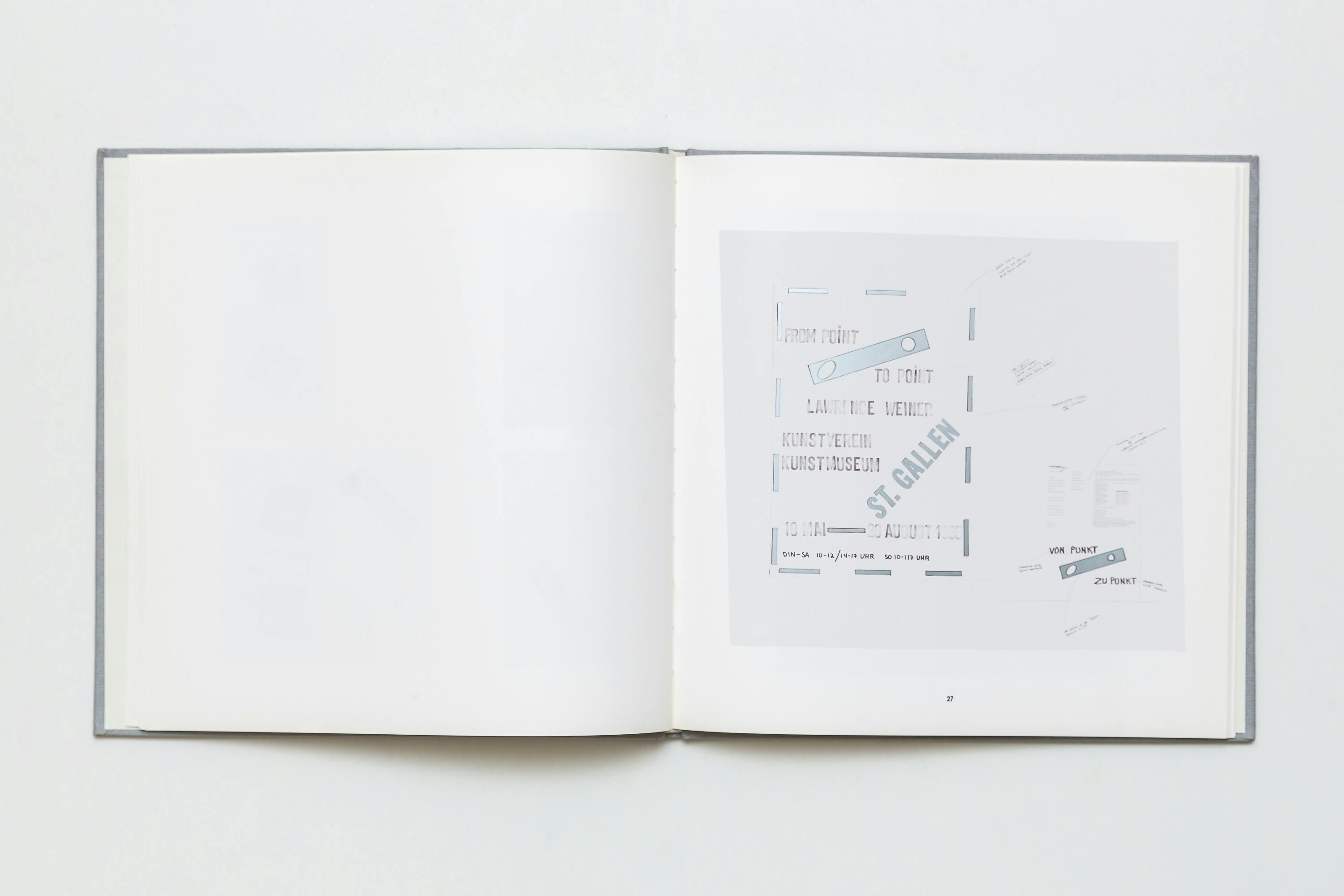 publication Lawrence Weiner FROM POINT TO POINT Prev Next Prev Next × Prev Next × × × × × Exhibition catalogue From Point to Point at Kunstmuseum St. Gallen in 1995. Hardcover 26.2 x 25.8 cm PUBLICATION DATE: 1995 LANGUAGE: DE / EN PUBLISHER: Kunstverein St Gallen DESIGNER: Lawrence Weiner EDITOR: Roland Wäspe, Konrad Bitterli 68 pages ISBN: 978-3927789548