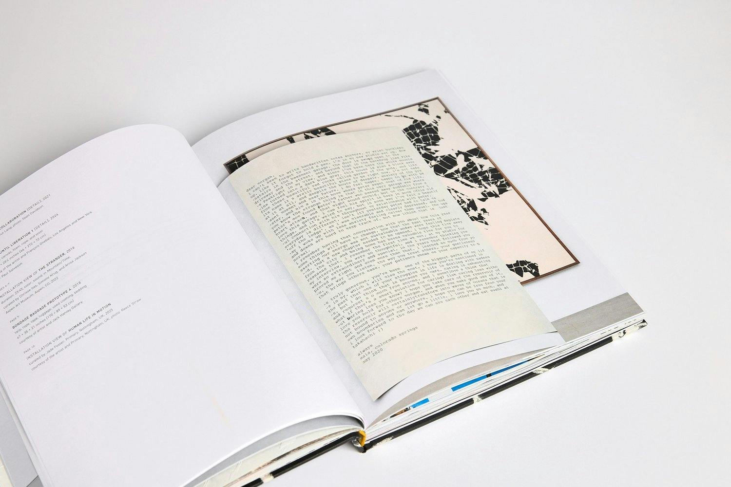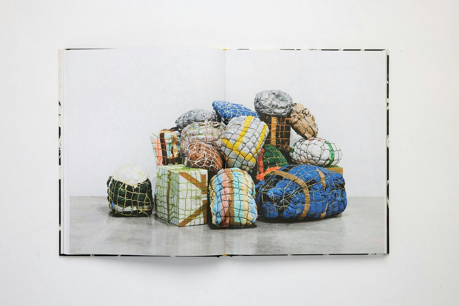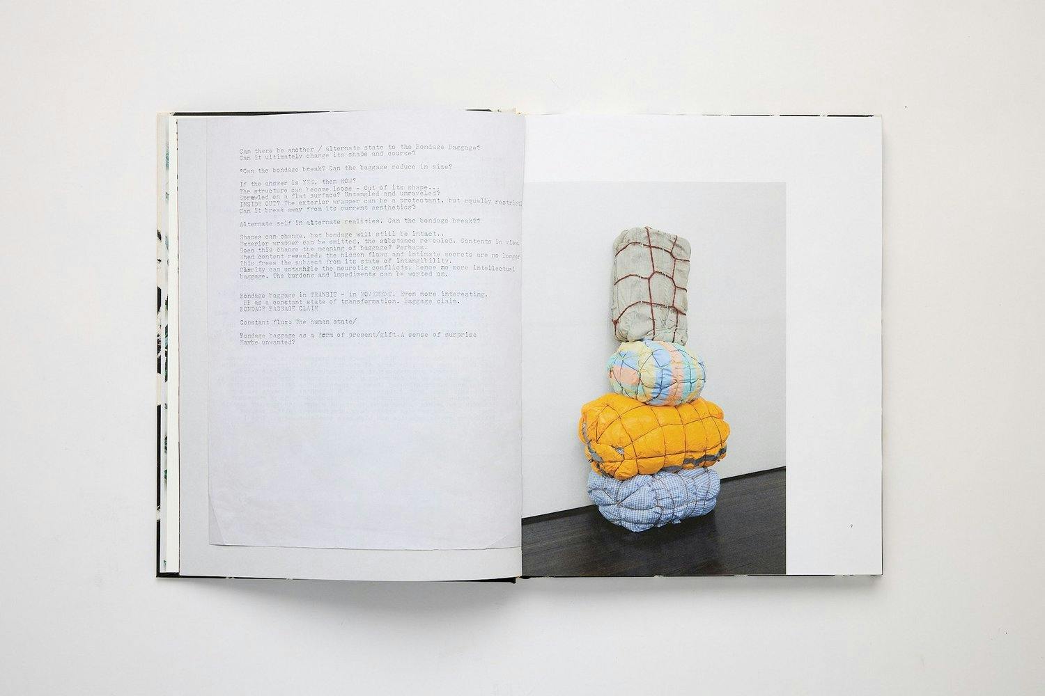 Migration lies at the core of Lee’s experience and comes to form in works that often evoke maps, atlases, and banners with an underlying interest in language, translation, symbols, and signs. In Bondage Baggage, the body is also referenced, as the bound baggage and textile works metaphorically visualize the accumulations and contours of a life. This volume weaves images of the sculpture, paintings, prints, and installation works that comprise this series with an introductory essay by Jade Foster and correspondence between Lee and her community of friends and family around the world, letters that tackle the realities of motherhood, community, language/communication, independence/interdependence, and artmaking in this fraught geopolitical moment.