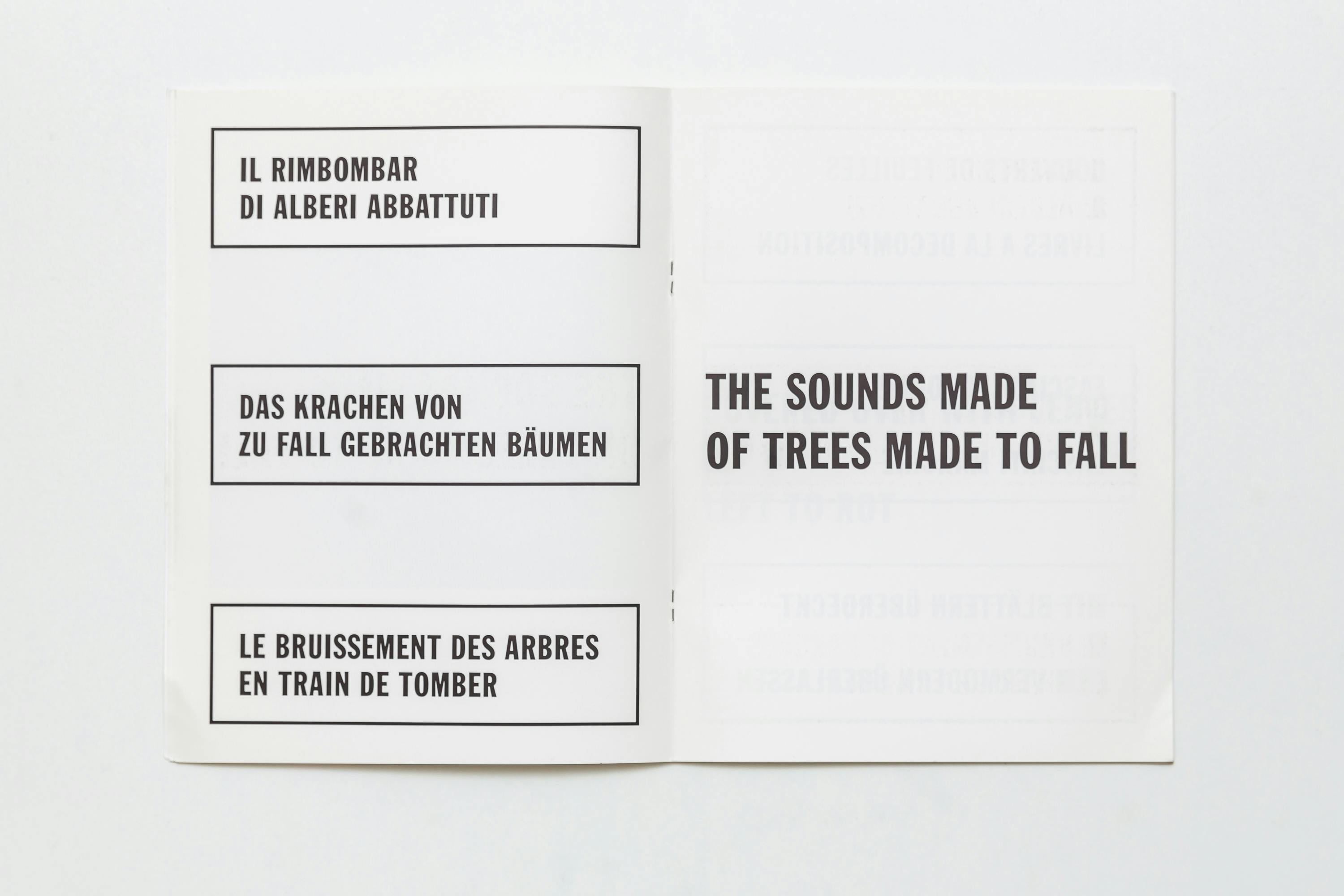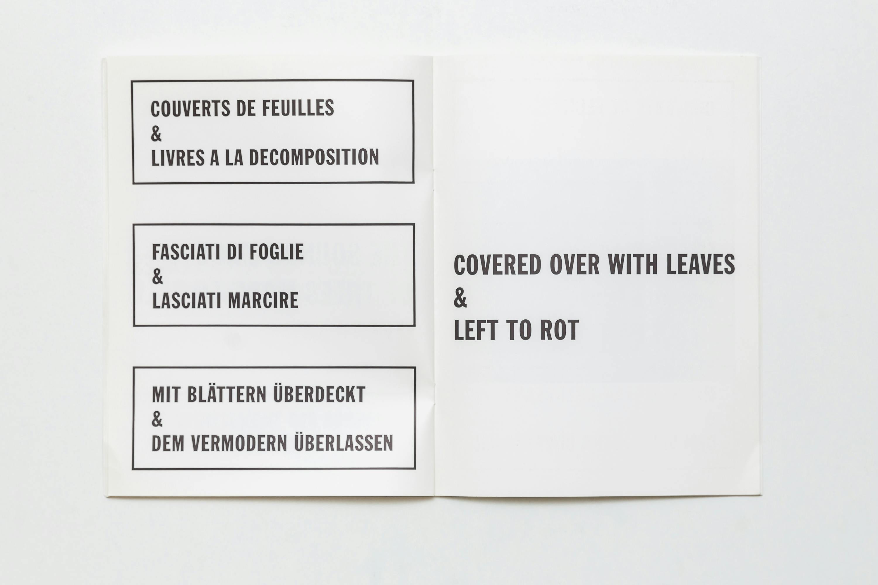 Published on occasion of the exhibition ON THE TOP OF THE TREES (1988) by Lawrence Weiner at Mai 36 Galerie, Lucerne.