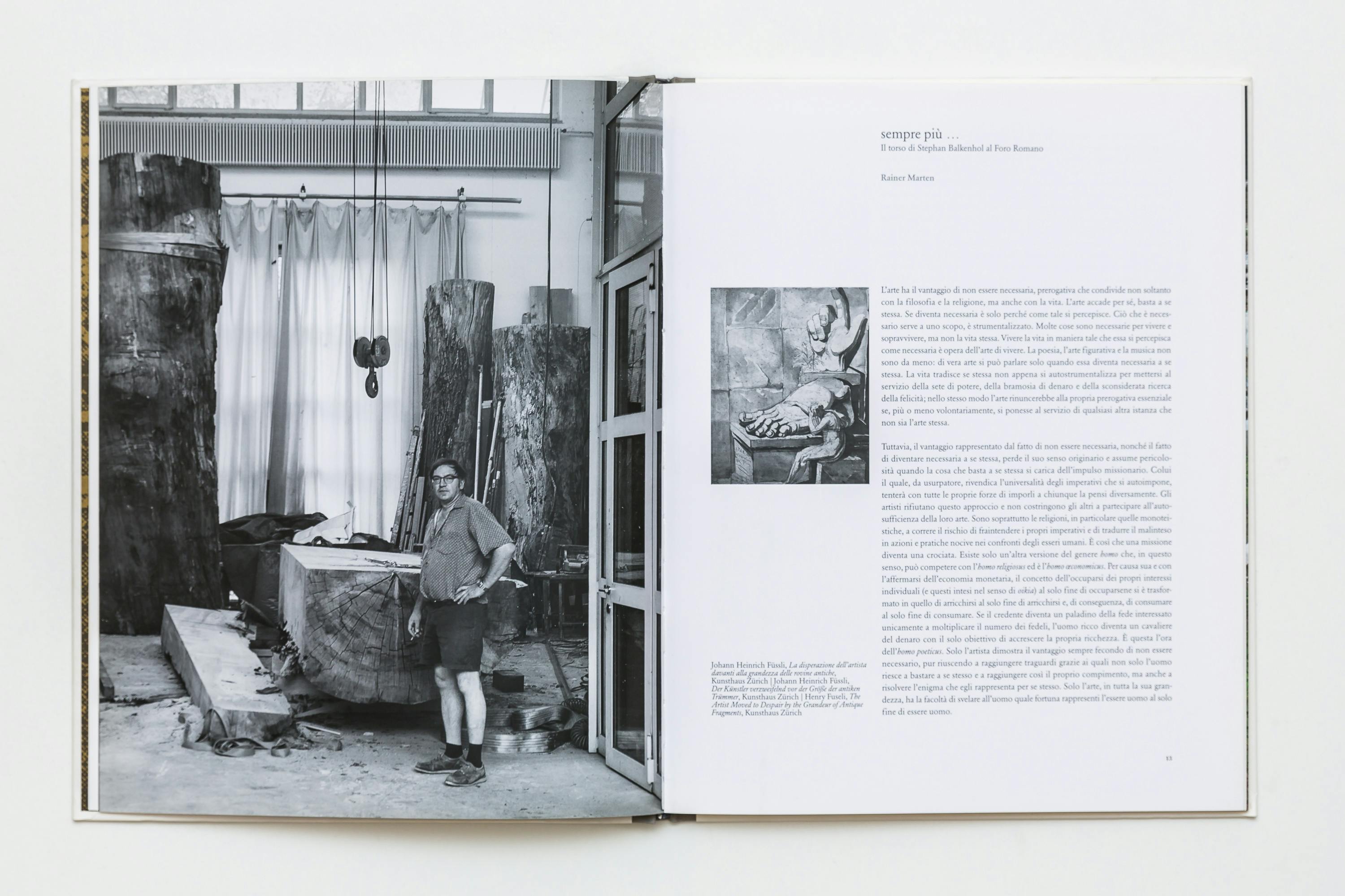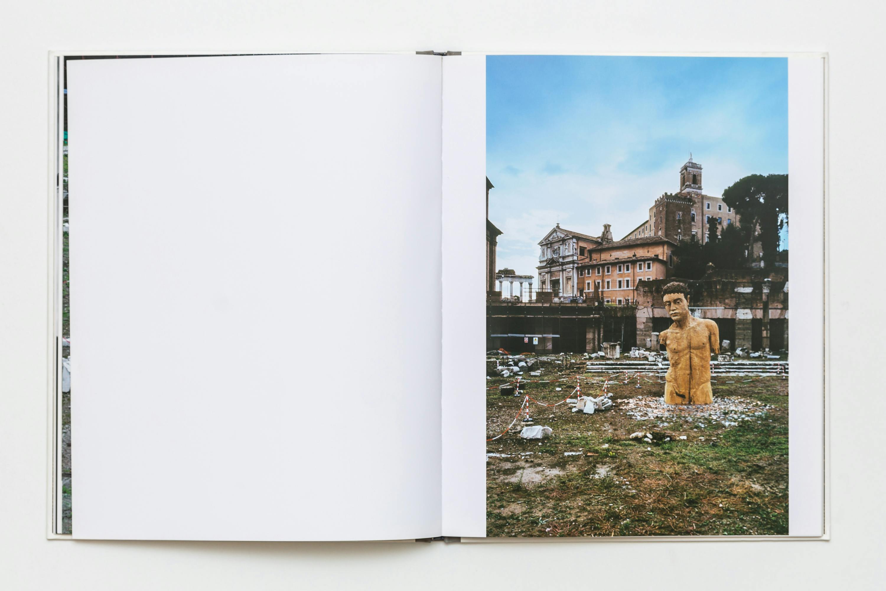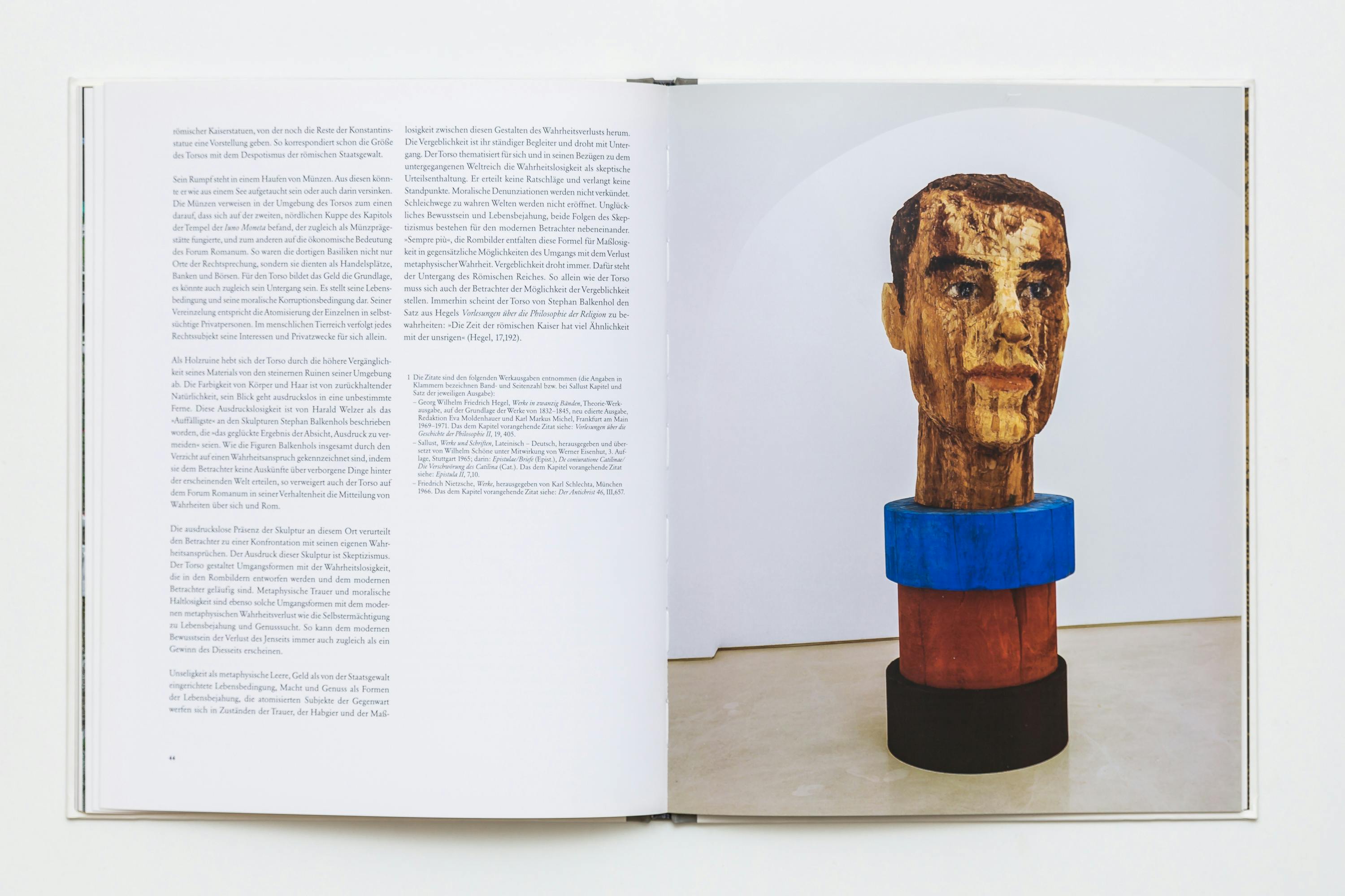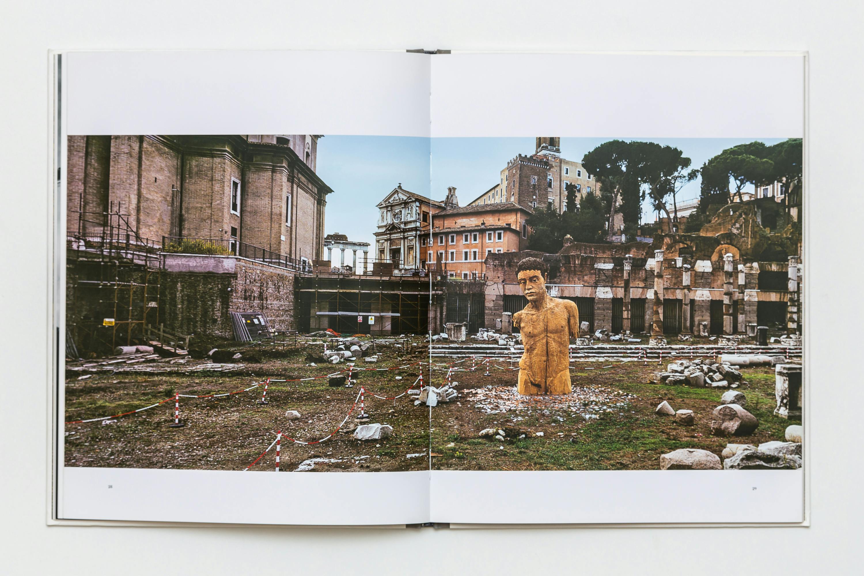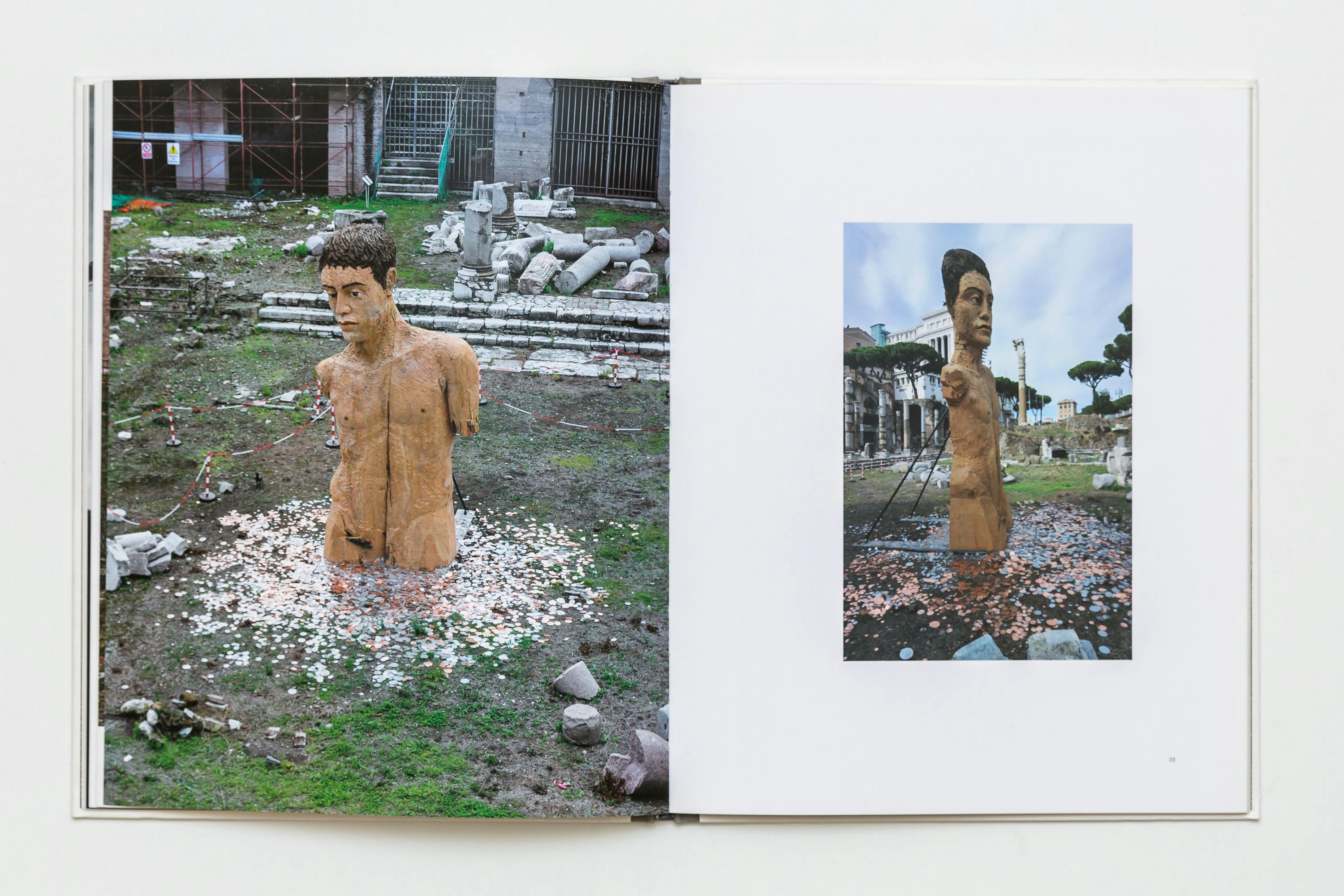 Sempre più... (Ever more...) is the title of Stephan Balkenhol's larger than life-size cedar wood torso. The figure was positioned amongst the ruins of the Forum Romanum in Rome, surrounded by a "sea of false money", from October 2009 to February 2010. The references made to the city's ancient past are quite recognisable, yet the figure is also clearly connected to the here and now. Alongside an analysis of Balkenhol's wooden sculpture, the catalogue is dedicated to philosophical and sociological musings with far-reaching implications, for example, the effects of human greed, of wanting "ever more".