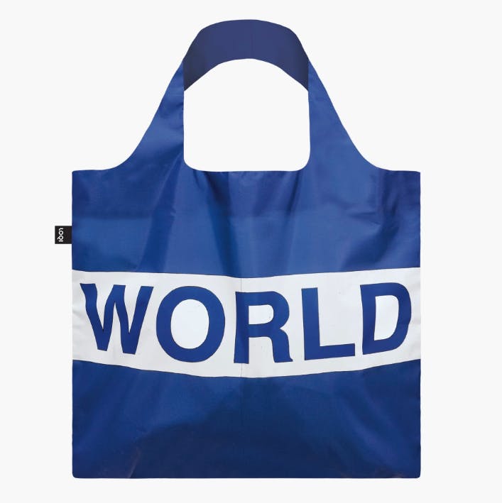 Signs & symbols produce meaning in a world saturated with images. Logolike notations, enclosed in simple shapes as in the World & Sign tote bag, invoke familiar images we see from international airports to highway insignia. In this cosmology, each color corresponds to different levels of perception: green stands for material, blue for the everyday world, yellow for ideas, white and black for language and red for the subjective.