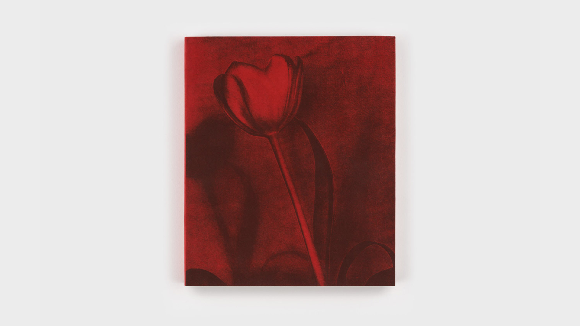 Throughout her methodical process, she embraces fingerprint smudges and other such ‘mistakes’ which make their way onto the surfaces, and some of her larger works include a seam running down the centre, further evidencing the second-hand nature of the reused materials. Among these dimmed vignettes are sources of light: the glow of a reading lamp, the satin sheen of tulip petals, or the sunlight beaming from the blank pages of an open notebook revealing tender moments suffused with a quiet beauty.